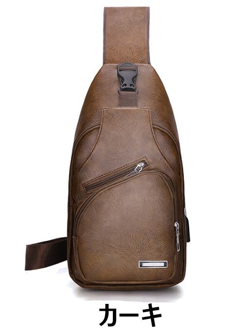 バッグ バック カバン かばん 鞄 ショルダーバッグ 肩掛けバッグ ワンショルダーバッグ 斜めがけバッグ 斜め掛けバッグ ボディバッグ レザーバッグ PUレザー 合皮 USBポート コードホール イヤホンコードホール 充電しながら使用可能 防水 撥水 人気 おすすめ 激安 安い 送料無料 プチプラ 男女兼用 ユニセックス レディースバッグ 女性用 メンズバッグ 男性用 黒 ブラック 茶色 ブラウン カーキ BK0035