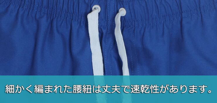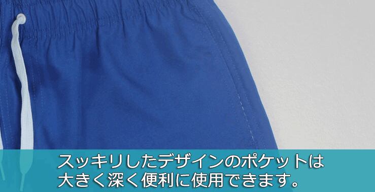 オーソドックスな形ながらトレンドのワイドシルエットの男性用ショートパンツ水着です。