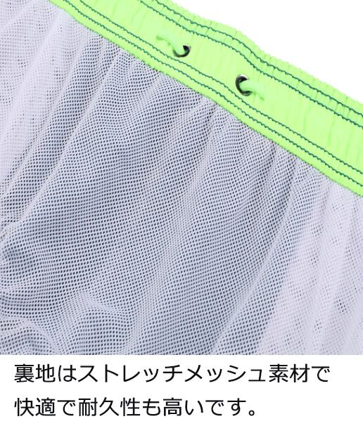 オーソドックスな形ながらトレンドのワイドシルエットの男性用ハーフパンツ水着です。
