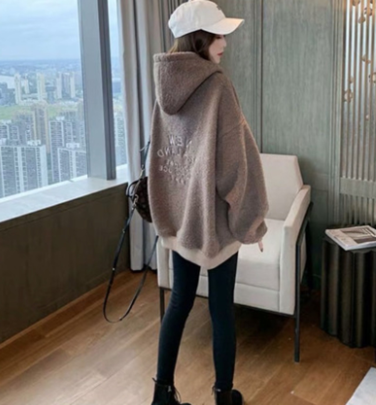 起毛素材の温かいパーカーです。