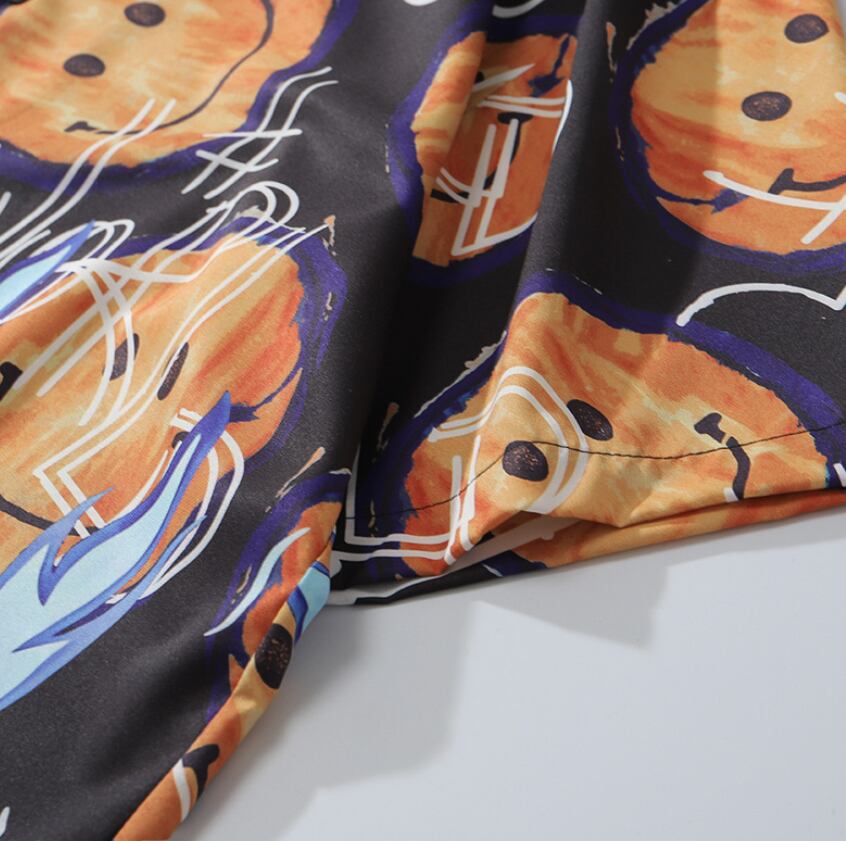 シャツ 開襟シャツ メンズ カジュアル トップス ニコちゃんマーク スマイリーフェイス ニコニコマーク 半袖