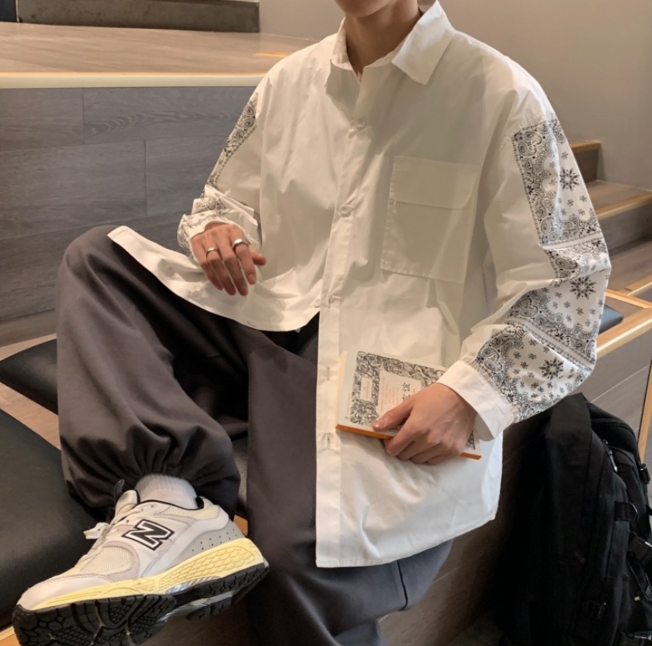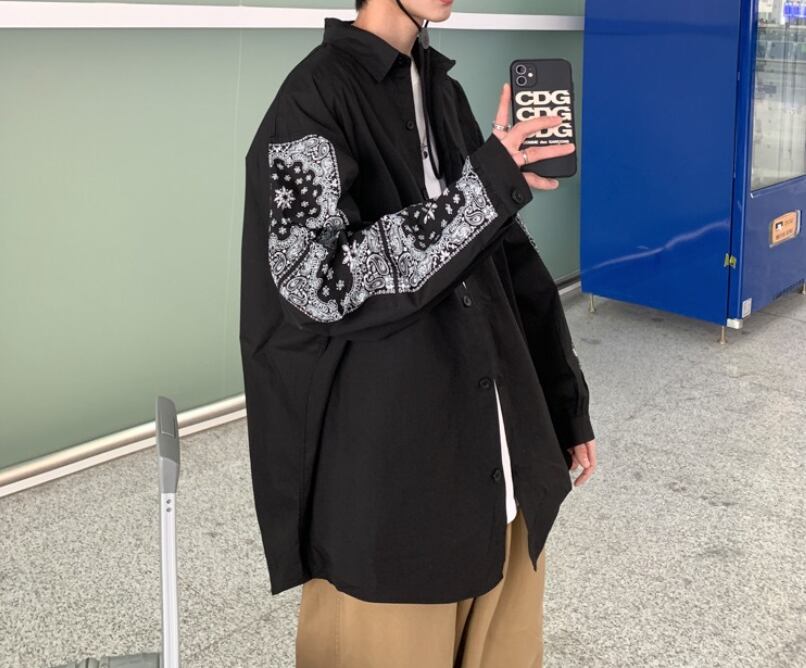 トップス 上着 人気 おすすめ おしゃれ お洒落 激安 安い 送料無料 プチプラ カジュアルシャツ 長袖 ロング レギュラーカラー ビッグシルエット オーバーサイズ ダボダボ ぶかぶか ワイド 柄 プリント ユニーク 個性的 可愛い かわいい 韓国 かっこいい モード系 カジュアル ストリート 男女兼用 ユニセックス レディース 女性用 メンズ 男性用 20代 30代 M L XL 2XL 大きいサイズ 大きめ ゆったり ゆる 白 ホワイト 黒 ブラック sh0148