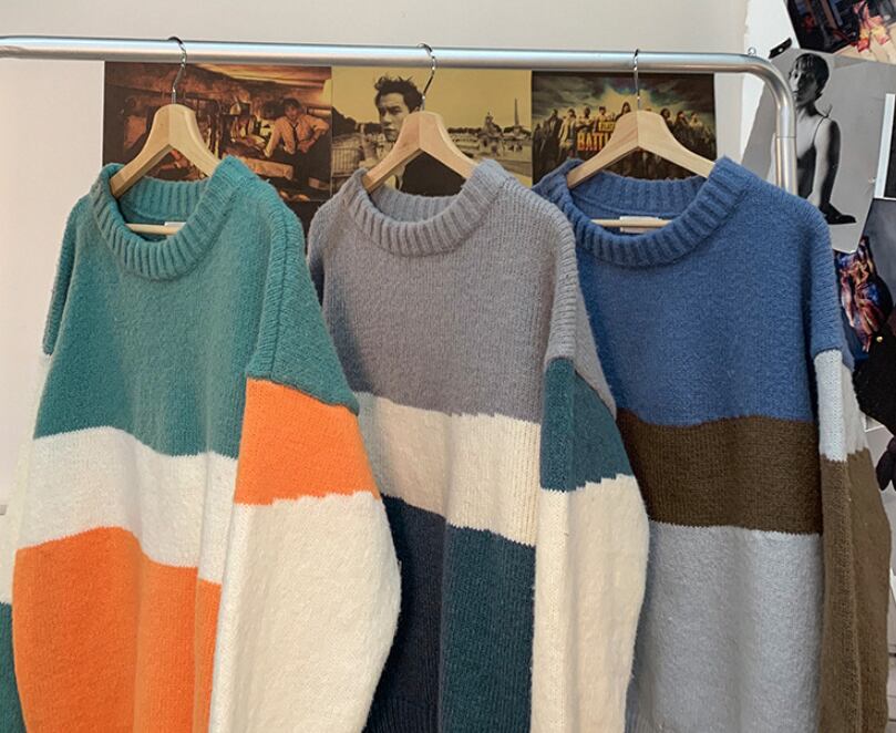 トップス 上着 人気 おすすめ おしゃれ お洒落 激安 安い 送料無料 プチプラ ニット セーター 長袖 ロング ラウンドネック 丸首 クルーネック プルオーバー オーバーサイズ ざっくり ワイド 配色切替 可愛い かわいい かっこいい カジュアル 冬 防寒 男女兼用 ユニセックス レディース 女性用 メンズ 男性用 20代 30代 M L XL 2XL 大きいサイズ ゆったり ゆる 白 ホワイト 灰色 グレー 茶色 ブラウン 青 ブルー 緑 グリーン 橙 オレンジ sh0177
