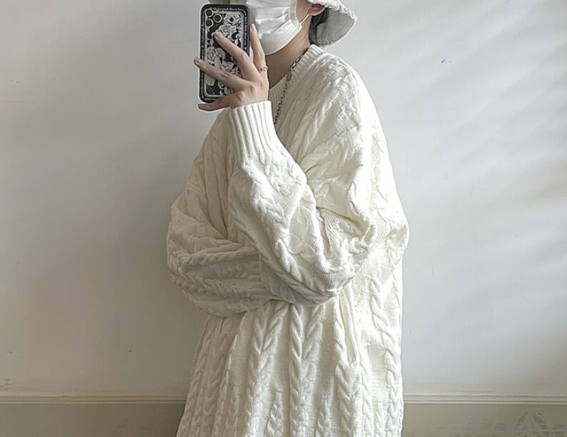 V字に並んだケーブル柄がコーデ全体を引き立てます。
