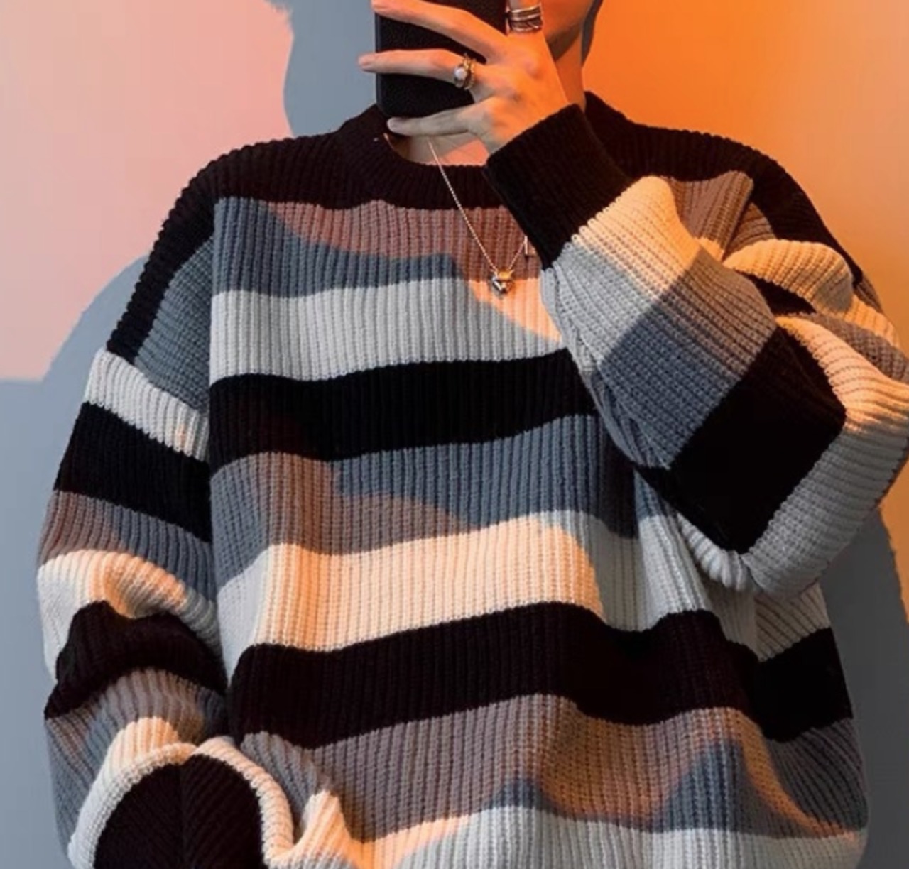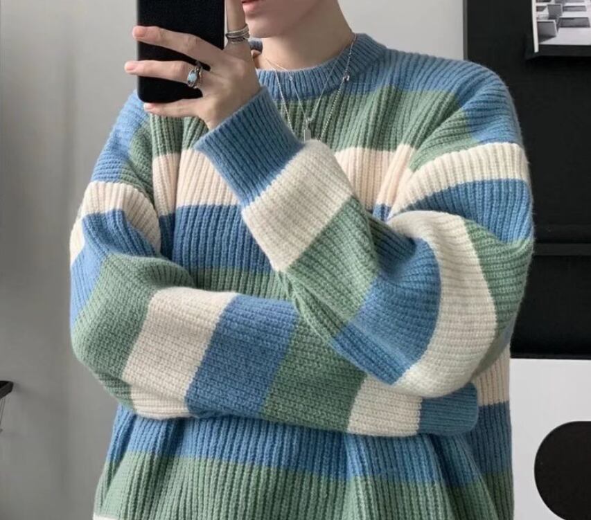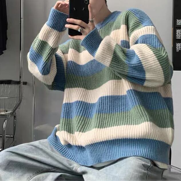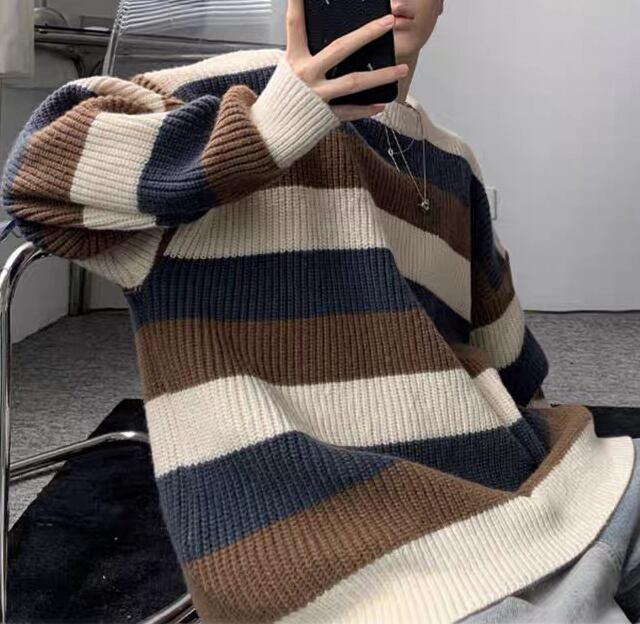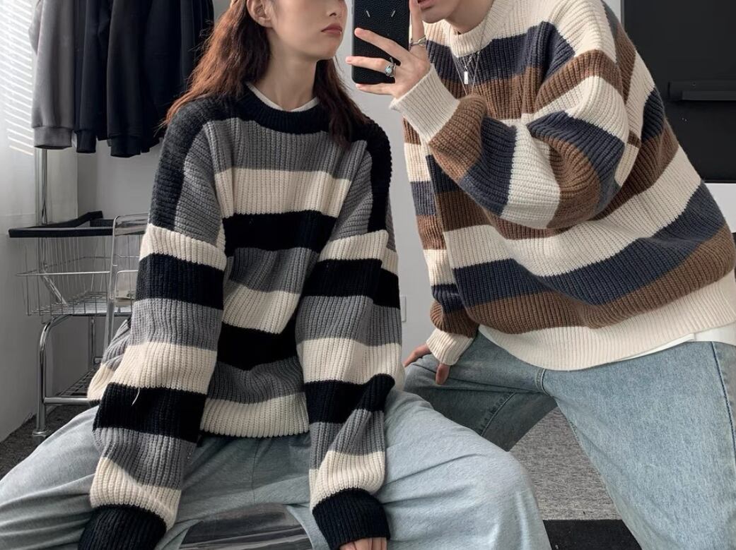 トップス 上着 人気 おすすめ おしゃれ お洒落 激安 安い 送料無料 プチプラ ニット セーター 長袖 ロング ラウンドネック 丸首 クルーネック プルオーバー ストライプ ボーダー 配色切替 可愛い かわいい 韓国 かっこいい カジュアル ストリート ペアルック 冬 防寒 デート 男女兼用 ユニセックス レディース 女性用 メンズ 男性用 20代 30代 M L XL 2XL 大きいサイズ 大きい 大きめ ビッグサイズ ゆったり ゆる 黒 茶色 緑 灰色 青 sh0191
