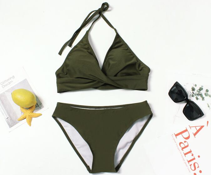 バカンスに ビキニ セクシービキニ セパレート ホルターネック ハイレグ 胸元 谷間魅せ 盛れる 上下セット きれいめ セクシー sexy ゴージャス おしゃれ お洒落 女っぽ セクシー モテ シンプルな無地 20代 30代 レディース 女性用 春 夏 海 ビーチ プール リゾート 旅行 美脚 脚長 美スタイル 送料無料 インスタ映え M L XL カーキ 大人カラー wsw0002