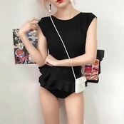 バカンスに ワンピース水着 体系カバー フリル 大人可愛い 大人っぽい シンプルな無地 20代 30代 40代 レディース 女性用 ミセス 女の子 春 夏 海 ビーチ プール 送料無料 体型カバー M L XL 黒 ブラック 赤 レッド wsw0001