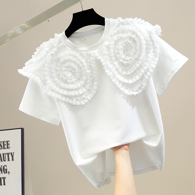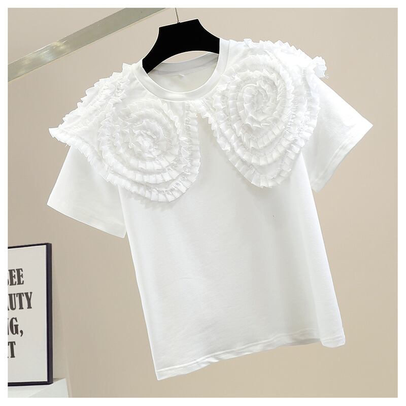 トップス Tシャツ カットソー プルオーバー 袖あり 半袖 クルーネック レース フリル かわいい 大人可愛い きれいめ シンプル カジュアル 大人 上品 おしゃれ お洒落 レトロ 大人可愛い 大人女子 こなれ感 ラフ ラブリー キュート ガーリー 個性的 主役級 存在感 無地 春 夏 10代 20代 30代 40代 50代 レディース 女性用 オフィス OL 通勤 学生 通学 デート お出かけ 公園デビュー 女子会 休日 アウトドア 旅行 高原 ガーデン 着回し 普段使い 韓国 韓国系