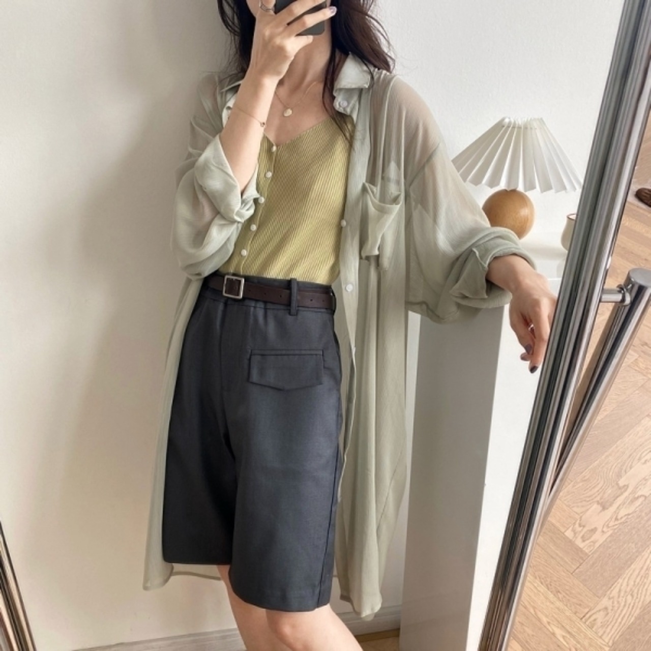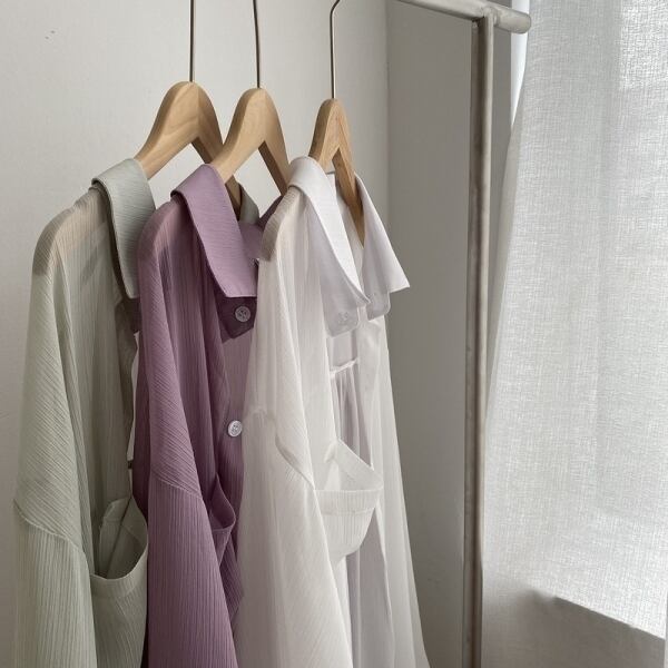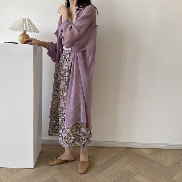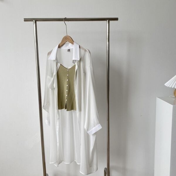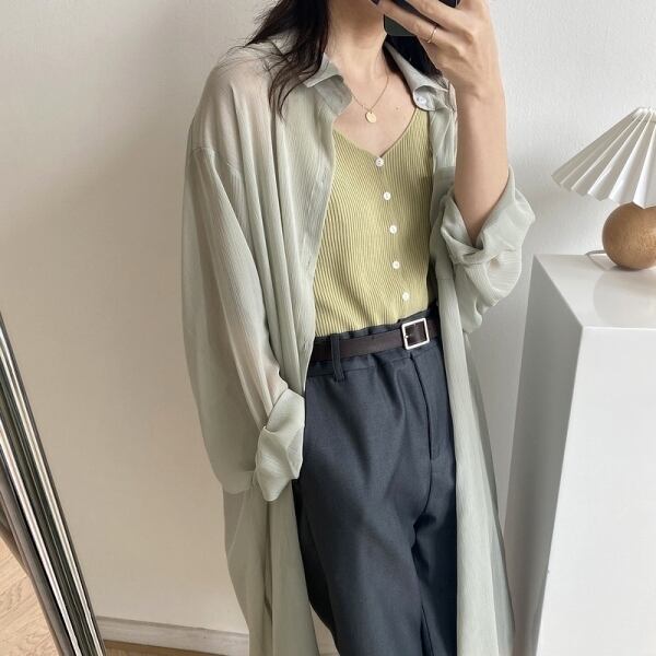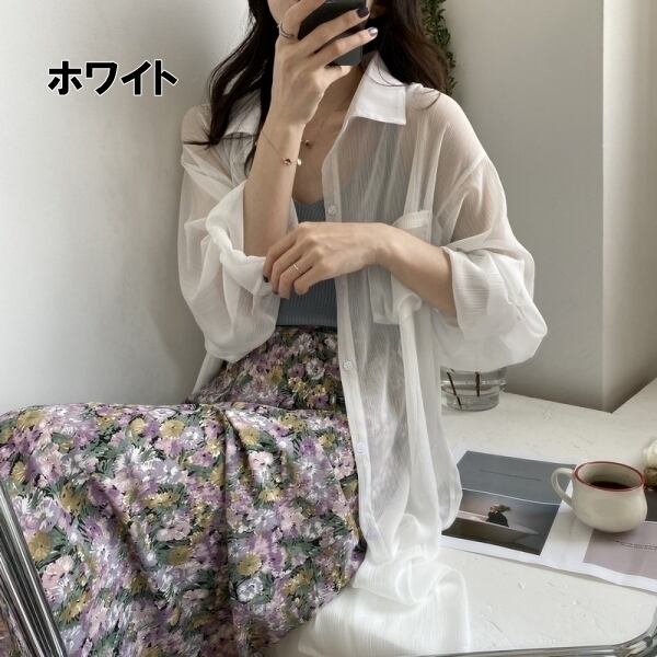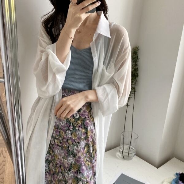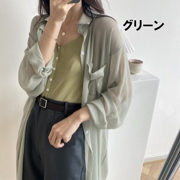涼し気なデザインの透け感が涼し気なロングシャツトップスです。