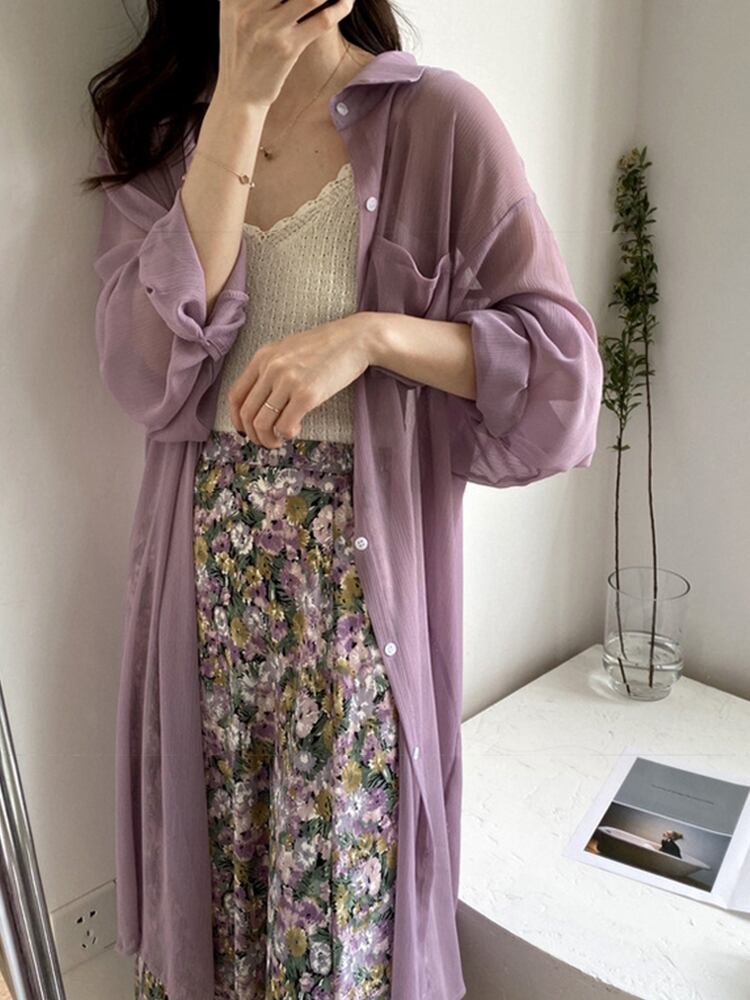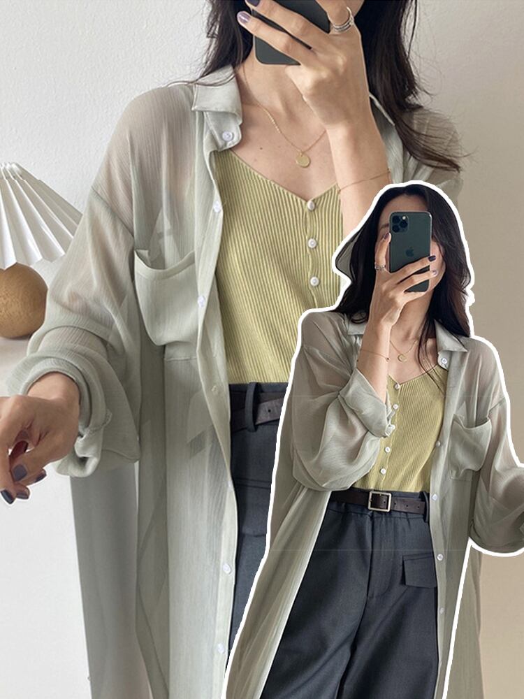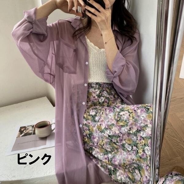トップス シャツ カットソー 袖あり 長袖 とろみ 透け感 シアー シースルー ロング丈 日焼け止め ポケット きれいめ シンプル カジュアル 大人 上品 おしゃれ かっこいい 大人女子 こなれ感 ラフ フォーマル 無地 春 夏 秋 20代 30代 40代 レディース ビジネス OL 通勤 着回し 普段使い S M L XL ゆったり ゆる ホワイト ピンク グリーン
