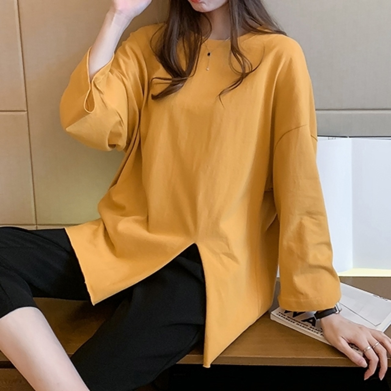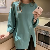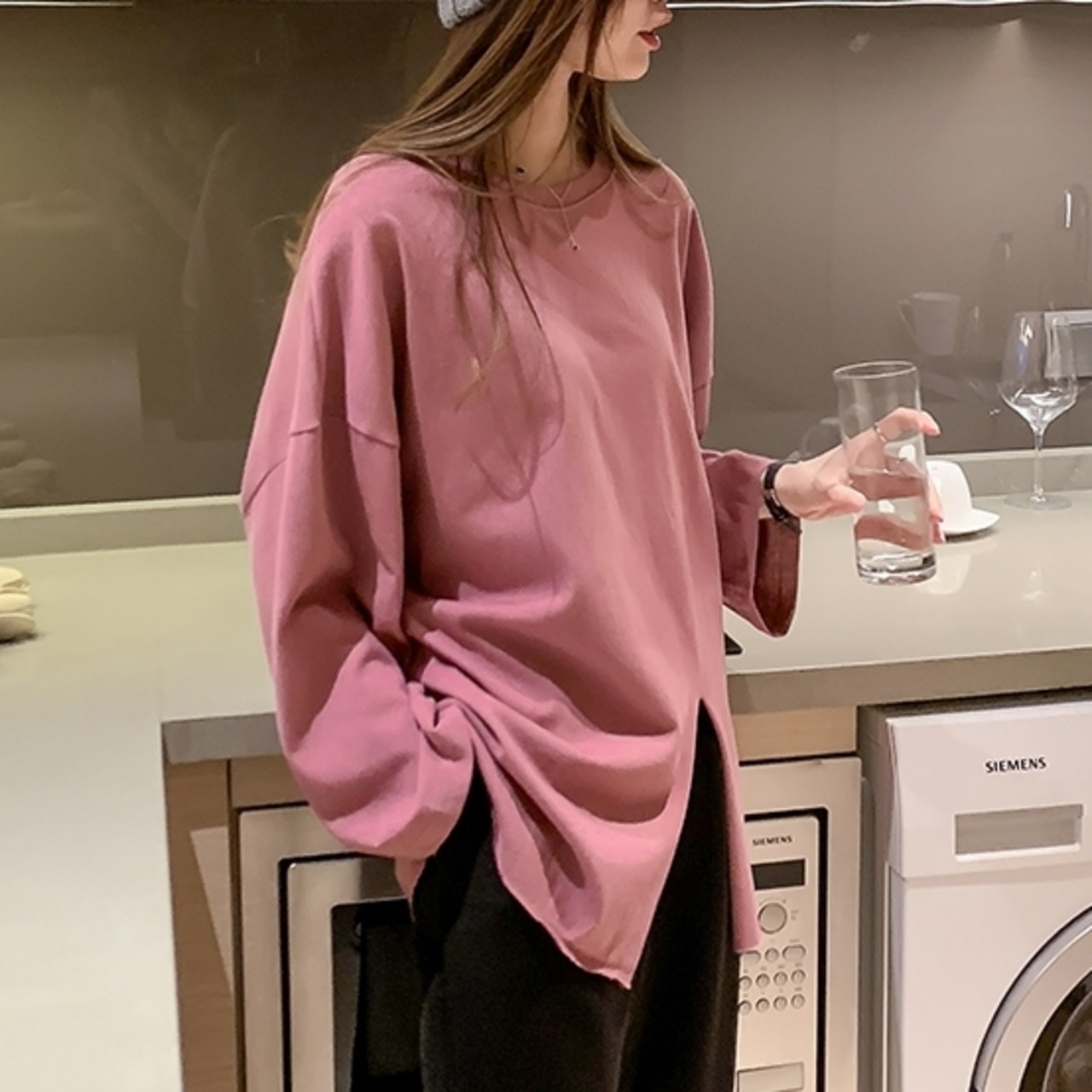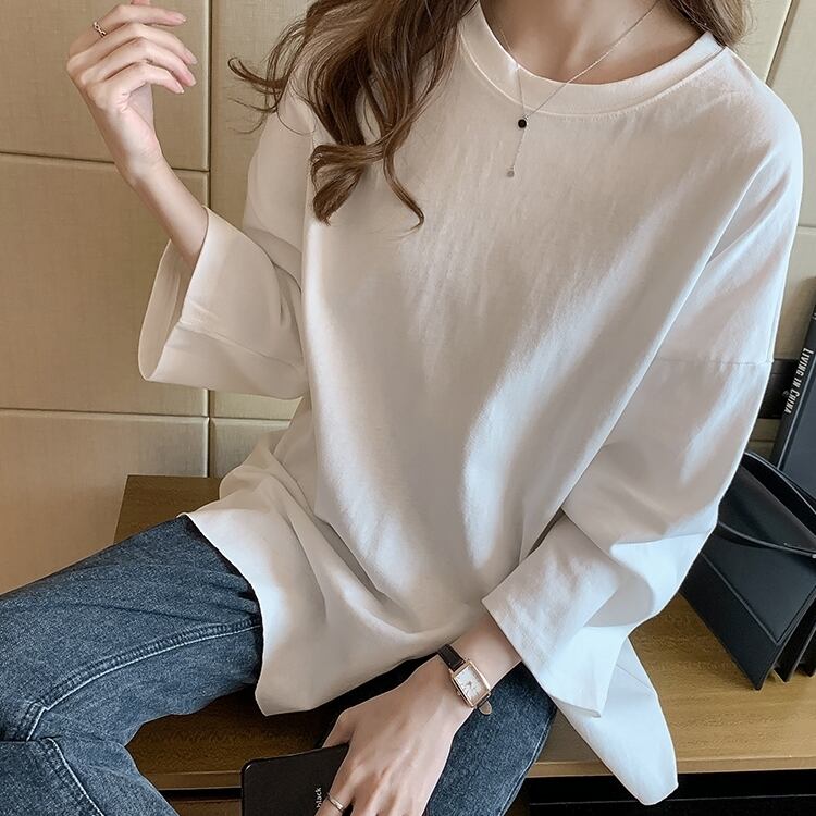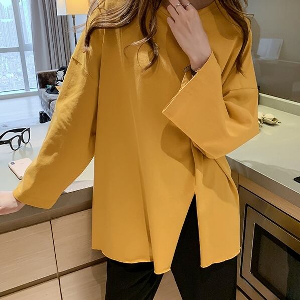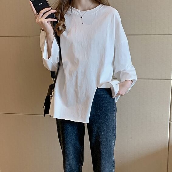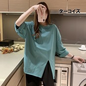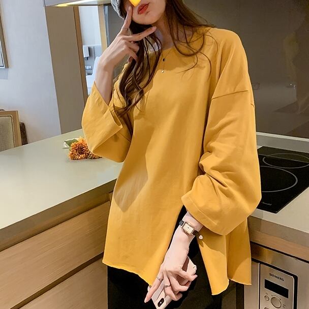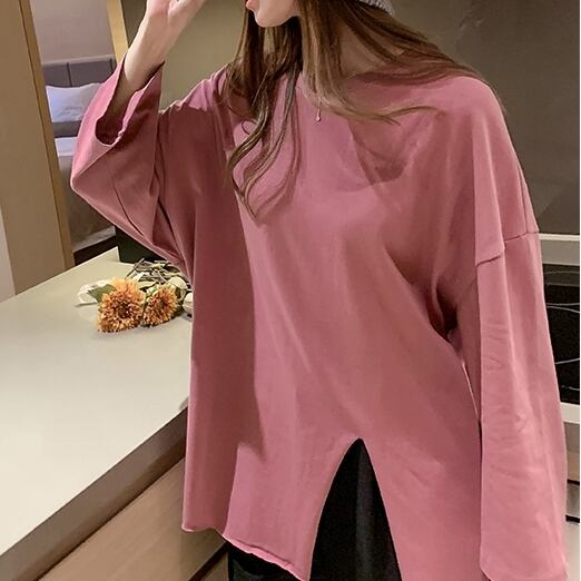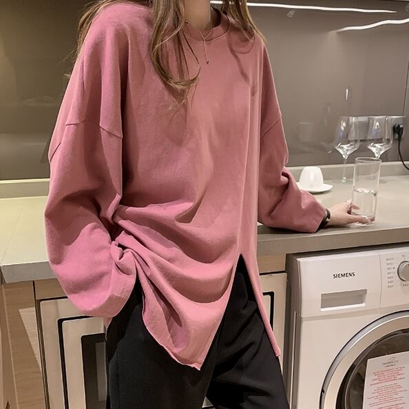 Tシャツ レディース トップス カットソー ルーズ 長袖 襟付き スリット ドロップショルダー クルーネック ゆったり Aライン こなれ感 かわいい 大人可愛い メンズライク きれいめ シンプル カジュアル 大人 上品 おしゃれ お洒落 かっこいい 大人可愛い 大人女子 こなれ感 ラフ キュート ガーリー ルーズ 無地 春 夏 10代 20代 30代 40代 レディース デート お出かけ 女子会 お泊まり 休日 着回し 普段使い 重ね着 韓国系 コーデ スタイル モテ 体型カバー 脚長 トレンド 流行