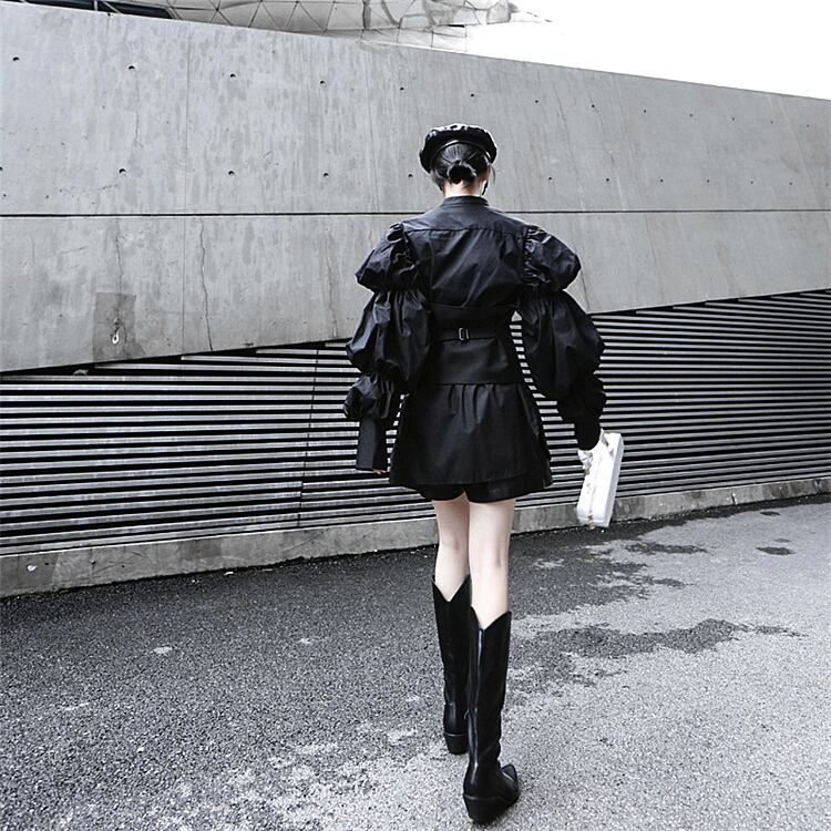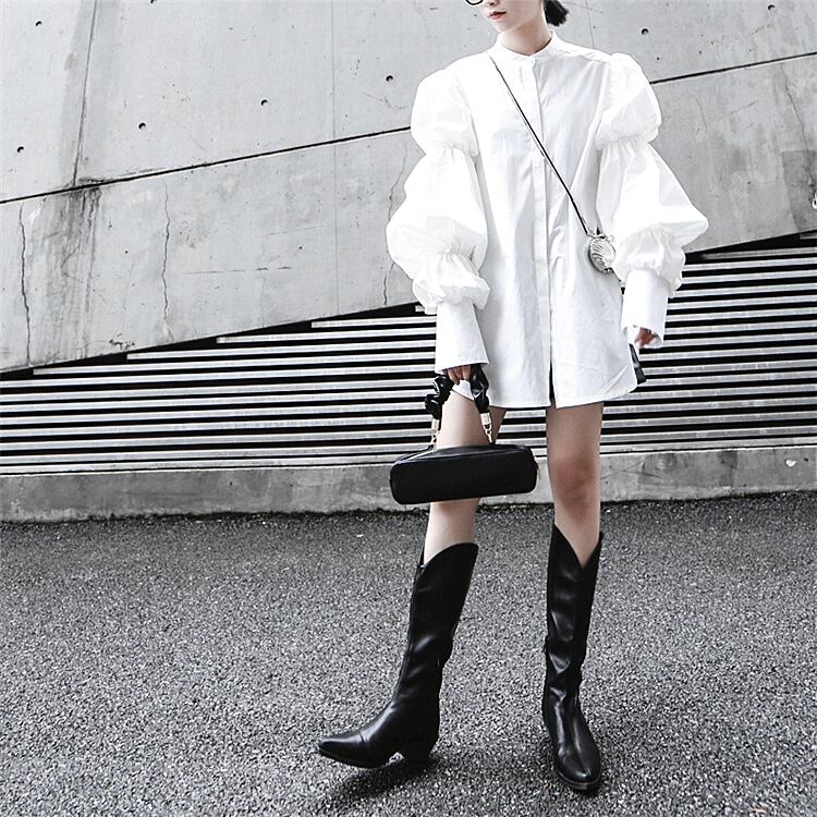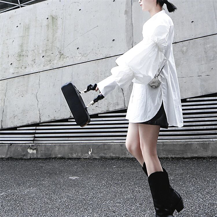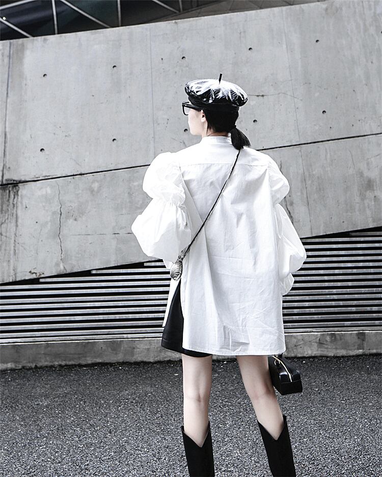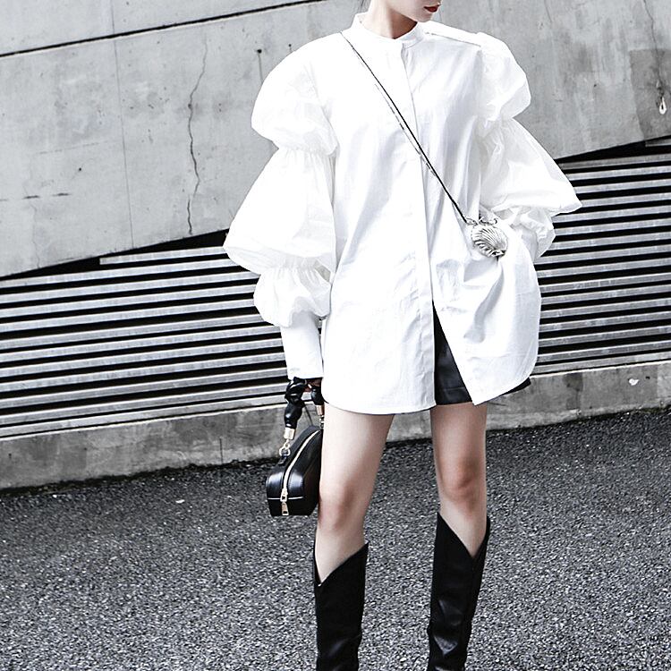 トップス シャツ 白シャツ 袖あり 長袖 ボリューム袖 バブルスリーブ 前開き 綿 かわいい 大人可愛い おしゃれ お洒落 かっこいい レトロ こなれ感 ラブリー キュート 個性的 クール モード系 ヴィンテージ風 無地 春 秋 10代 20代 デート お出かけ 女子会 お泊まり イベント 韓国系 オルチャン ファッション サイズ フリーサイズ ホワイト ブラック