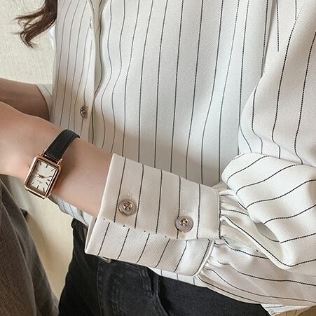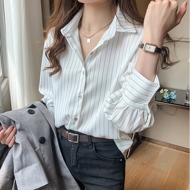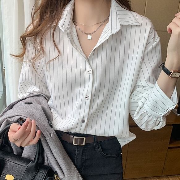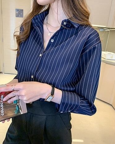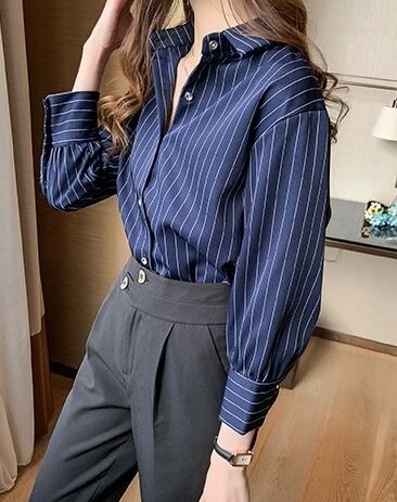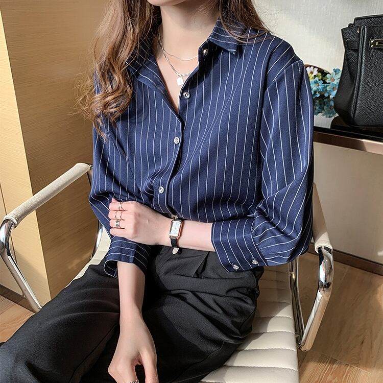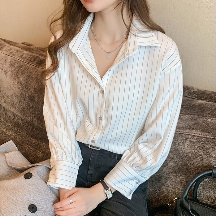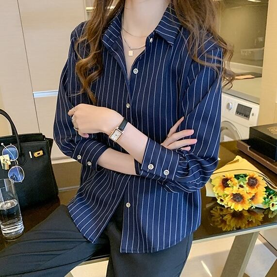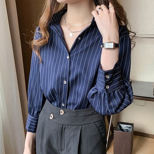 トップス レディース ブラウス 袖あり 長袖 ストライプ 前開き レギュラーカラー マルチカラ— ドロップショルダー ショート丈 パフスリーブ かわいい 大人可愛い シンプル カジュアル 大人 おしゃれ アジアン 大人女子 こなれ感 キュート デート クラシカル 柄 春 夏 10代 20代 30代 オフィス ビジネス OL 通勤 デート お出かけ 普段使い S M L XL 2XL 3XL 大きいサイズ ホワイト ネイビー