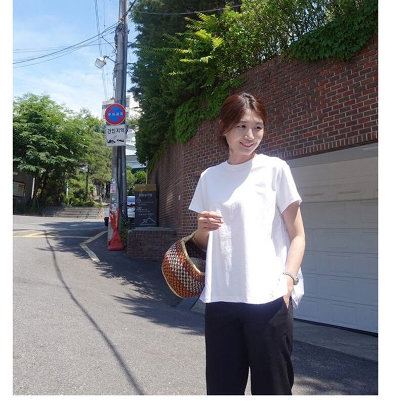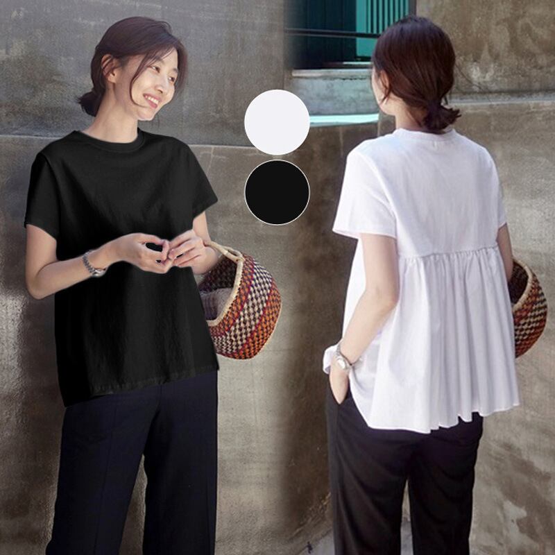トップス Tシャツ カットソー 白シャツ 袖あり 半袖 ラウンドネック セミフレア 切り替えデザイン かわいい 大人可愛い きれいめ シンプル カジュアル おしゃれ 無地 春 夏 10代 20代 30代 40代 OL 通勤 学生 通学 公園デビュー 女子会 着回し 普段使い S M L XL ホワイト ブラック