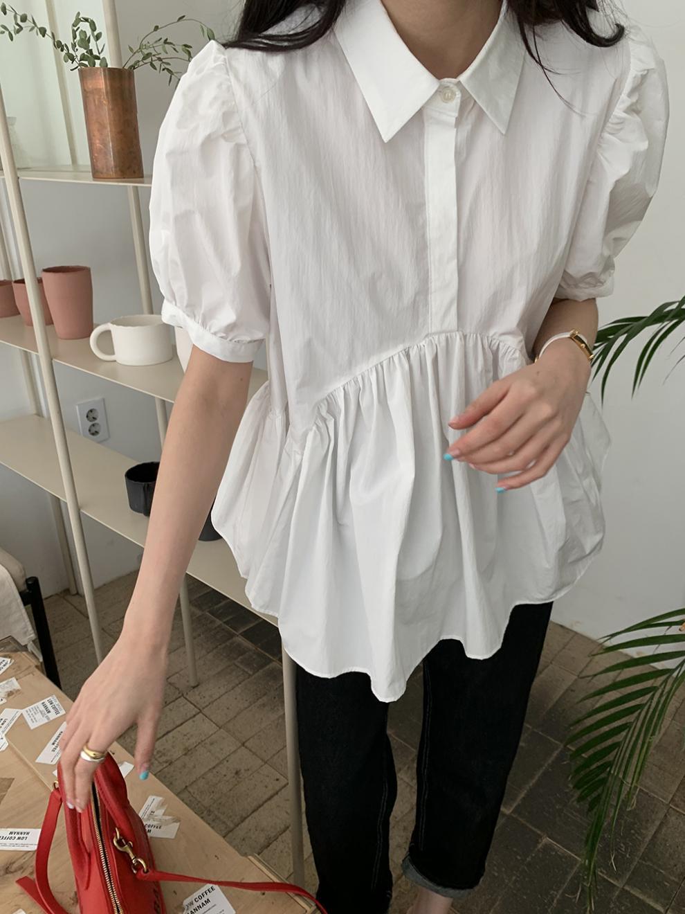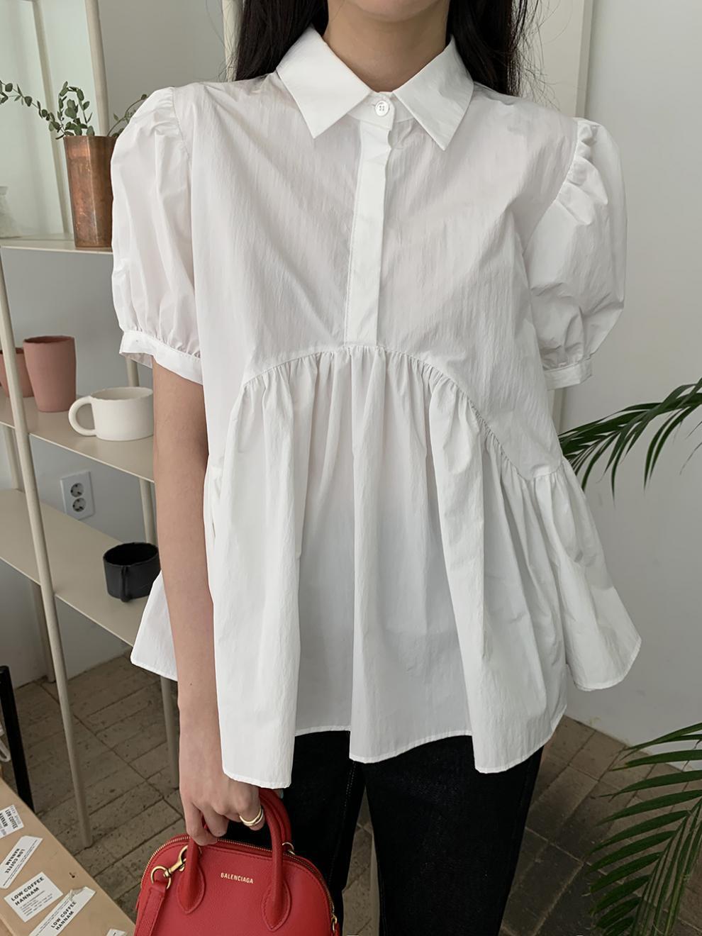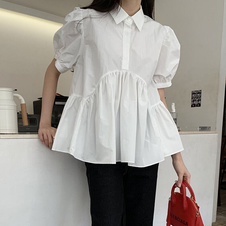 トップス ブラウス 白トップス 袖あり 半袖 フレア ペプラム フリル 切り替えデザイン かわいい 大人可愛い きれいめ シンプル カジュアル おしゃれ 無地 春 夏 10代 20代 30代 40代 OL 通勤 学生 通学 女子会 着回し 普段使い M L XL 2XL ゆったり ホワイト ブラック