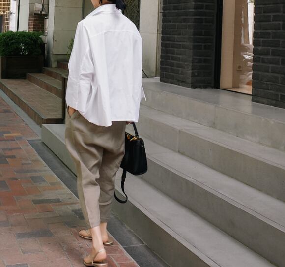 オーバーサイズでも女性らしく華奢に見せてくれるデザインです。