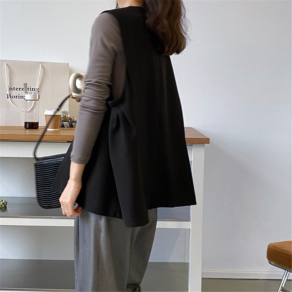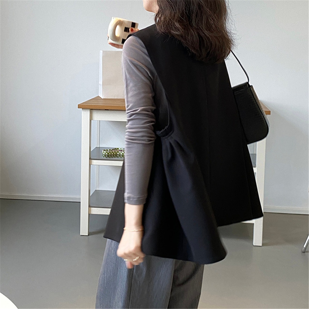 腕の下のギャザーでフェミニンな立体感に仕立てた個性的なベストです。