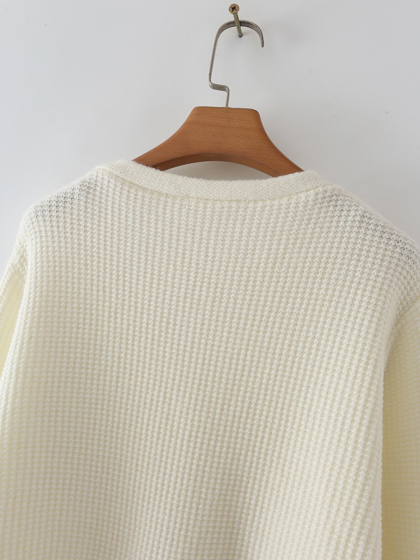 ワッフル生地で仕立てた優しい肌触りのカーディガンです。