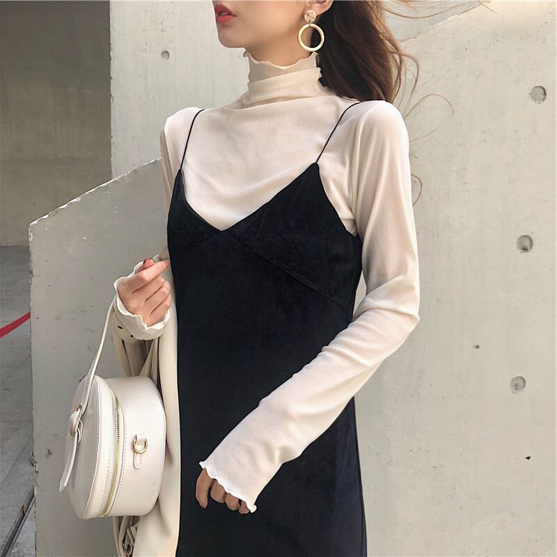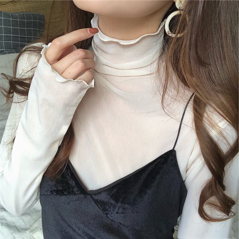 トップス シャツ カットソー 白シャツ 白トップス 袖あり 長袖 ハイネック フリル かわいい 大人可愛い シンプル 上品 おしゃれ ラブリー キュート ガーリー 無地 春 夏 秋 10代 20代 30代 レディース OL 通勤 学生 通学 デート お出かけ 休日 着回し 普段使い 楽ちん ホワイト ブラック アプリコット