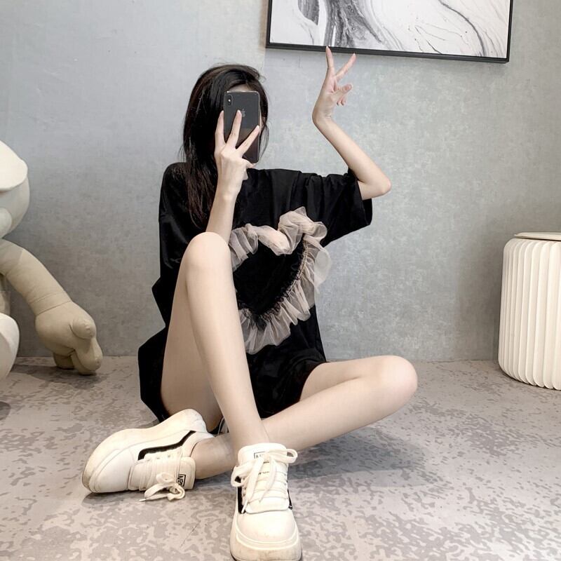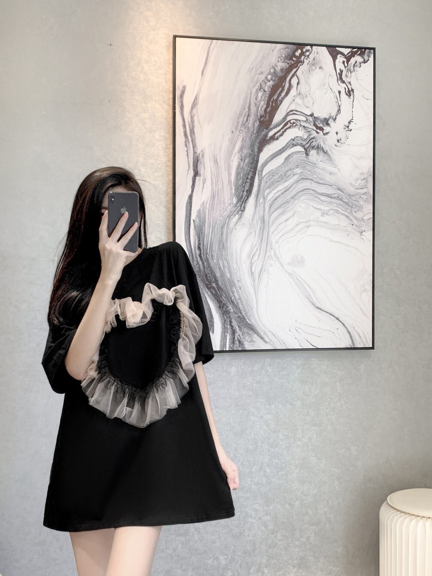 オーバーシルエットが可愛いチュールハート付きTシャツです。