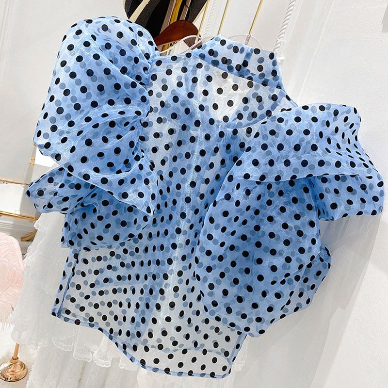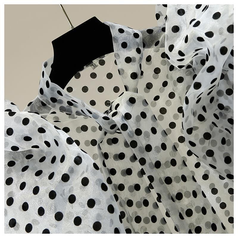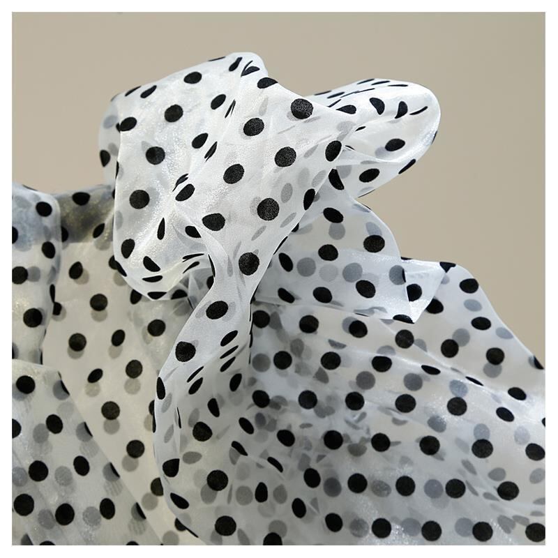 レトロなドットと上品な透け感がトレンドをおさえたアイテム。