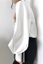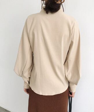 ランタンスリーブがかわいく、柔らかな肌触りで着心地のいいシャツブラウスです。