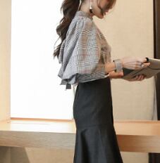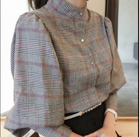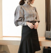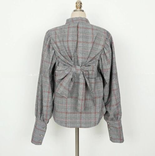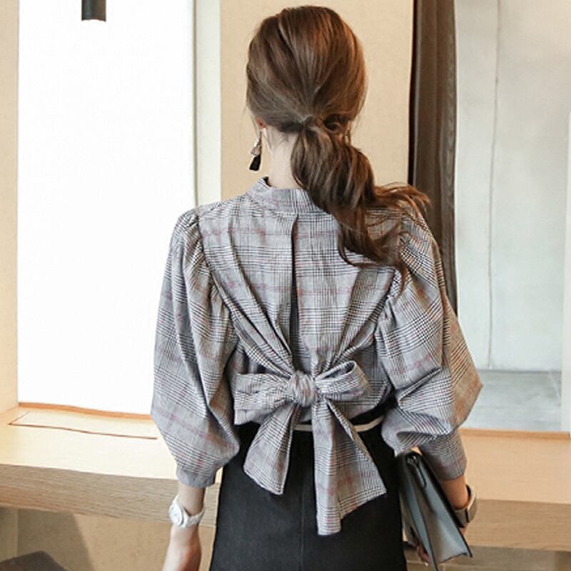 トップス グレンチェック ブラウス 長袖 ボリュームスリーブ バックリボン ハイウエスト タックネック ランタンスリーブ 上品 チェック柄 ハイネック 人気 おすすめ おしゃれ お洒落 激安 安い 送料無料 プチプラ 可愛い かわいい 韓国 かっこいい カジュアル 大人 上品 きれいめ おしゃれ 大人可愛い 大人女子 モード系 オフィス ビジネス OL 通勤 デート お出かけ 女子会 レディース 女性用 20代 30代 40代 ママ 着回し 普段使い 重ね着 オルチャン ファッション 楽ちん モテ