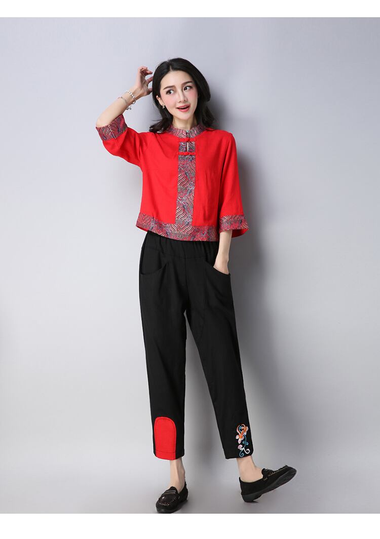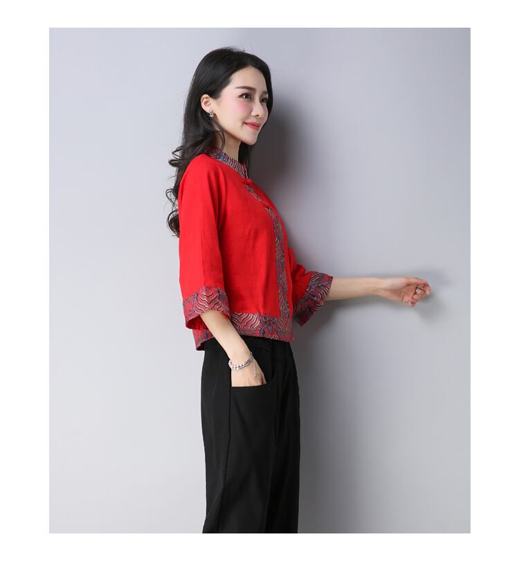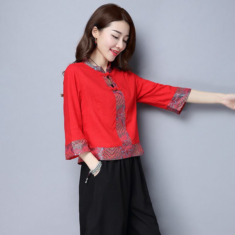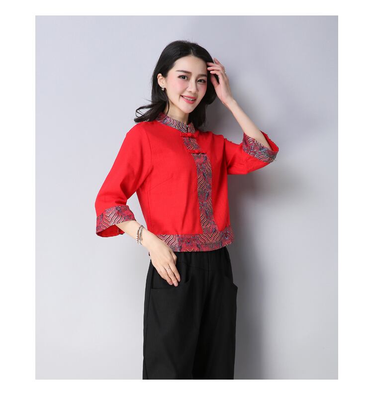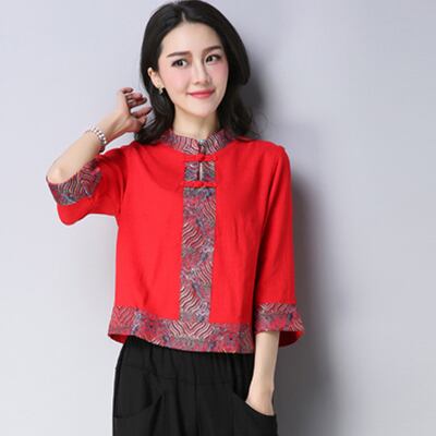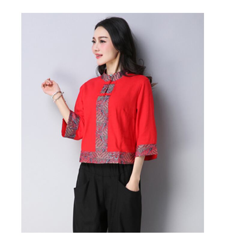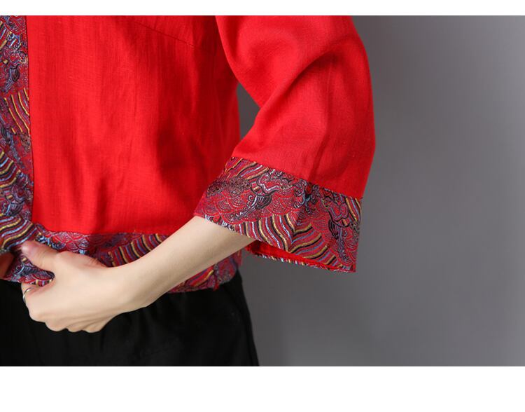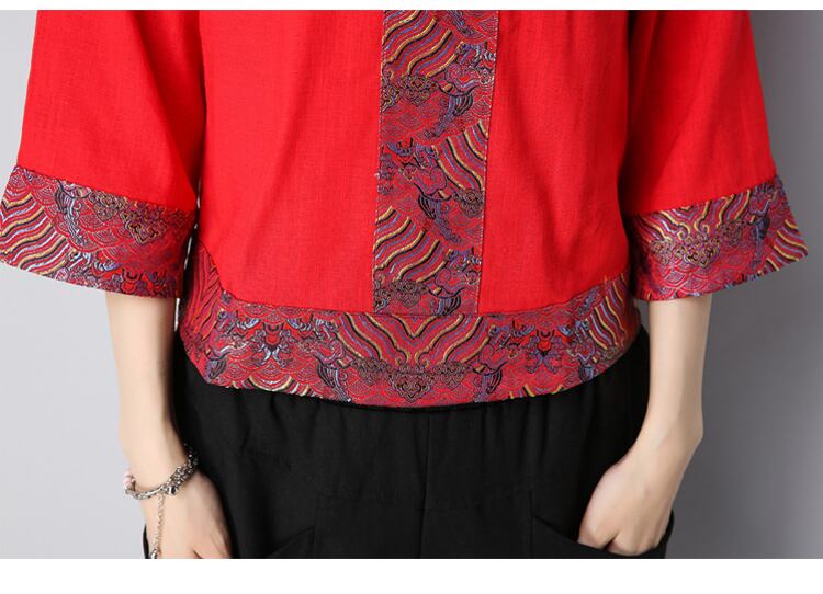個性的 トップス カットソー 袖あり 7分袖 ストレート おしゃれ お洒落 かっこいい レトロ アジアン エスニック 個性的 春 夏 秋 20代 30代 40代 50代 60代 レディース 休日 韓国系 コーデ スタイル M L XL 2XL 赤
