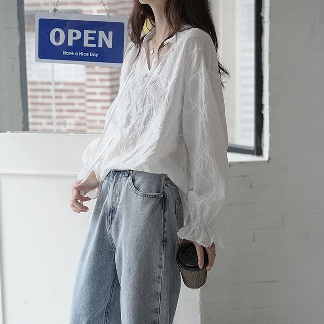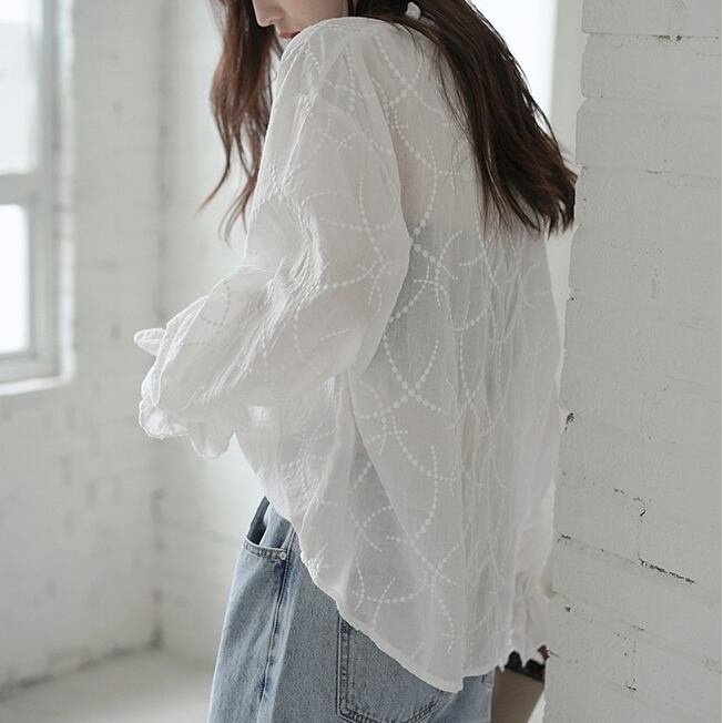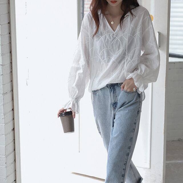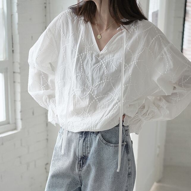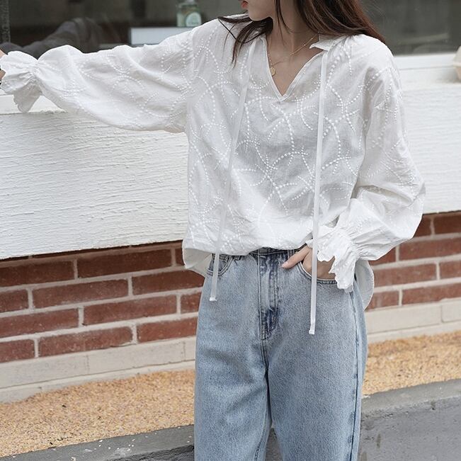 トップス レディース ブラウス 袖あり 長袖 襟なし フリル 幾何学 刺繍 キーネック ドローストリング リボン パフスリーブ かわいい 大人可愛い きれいめ シンプル カジュアル 大人 上品 おしゃれ お洒落 かっこいい レトロ アジアン 大人可愛い 大人女子 こなれ感 ラフ 無地 レディース ビジネス OL 通勤 学生 通学 デート お出かけ 公園デビュー 女子会 お泊まり 休日 アウトドア パーティー イベント リゾート お揃い 双子 ファッション コーデ スタイル 楽ちん ホワイト