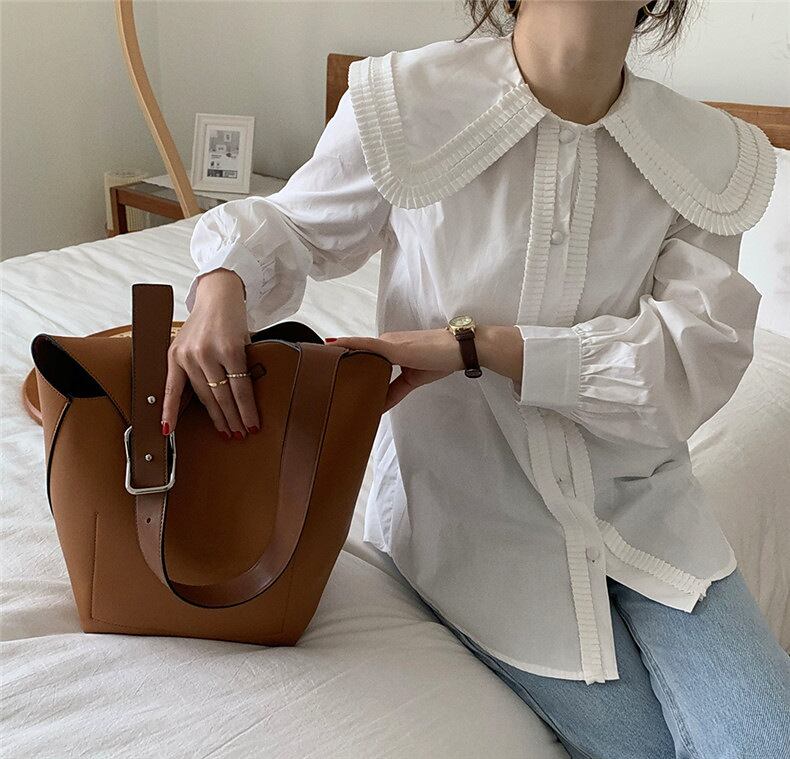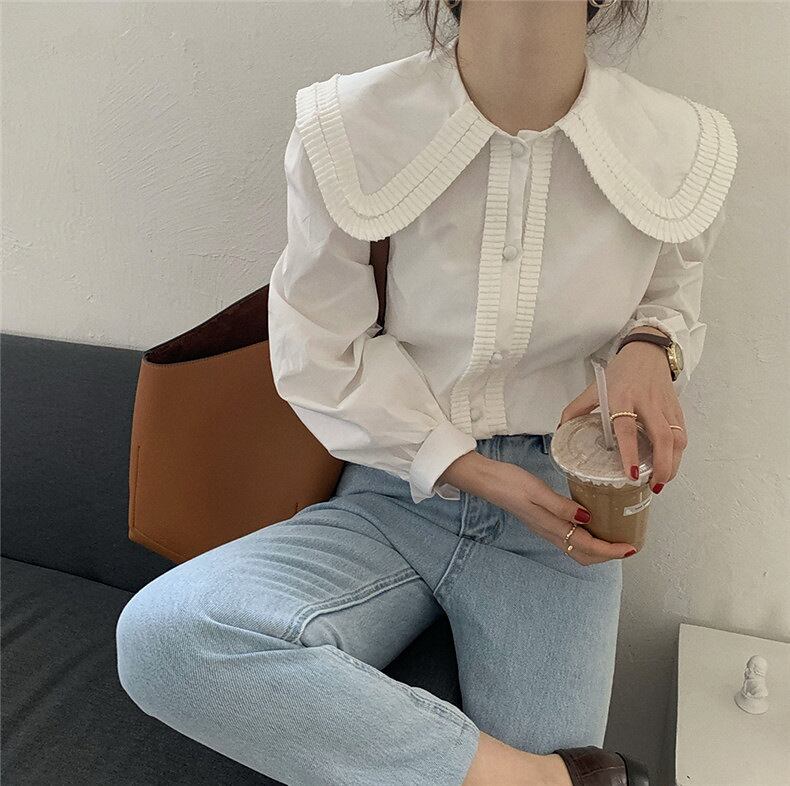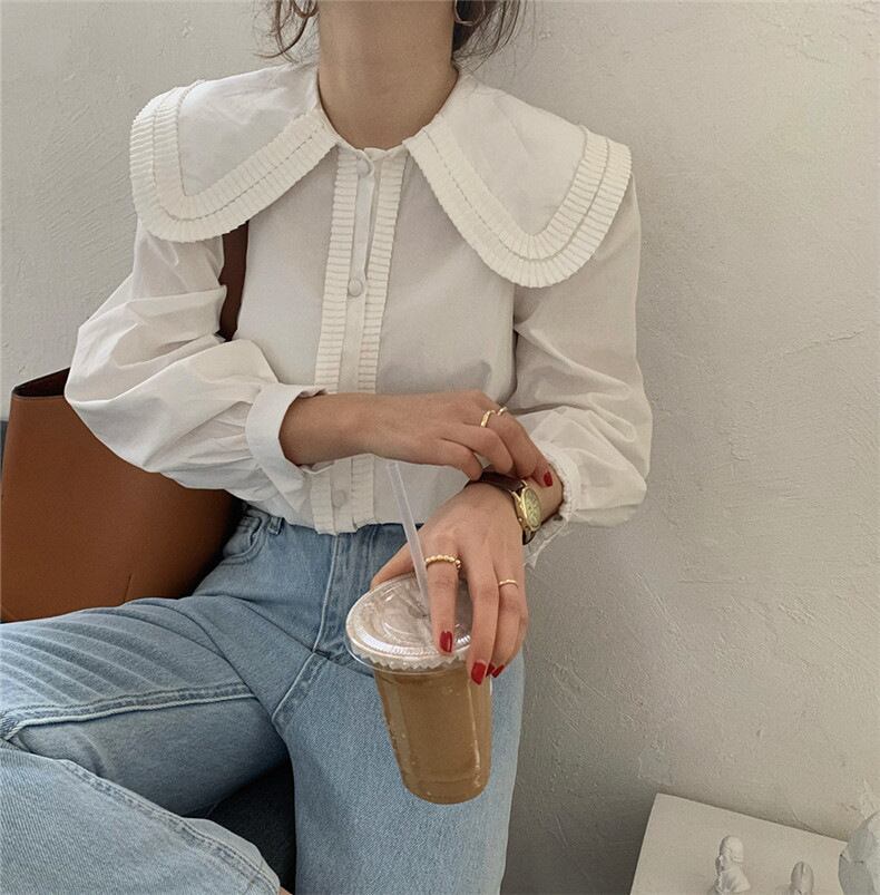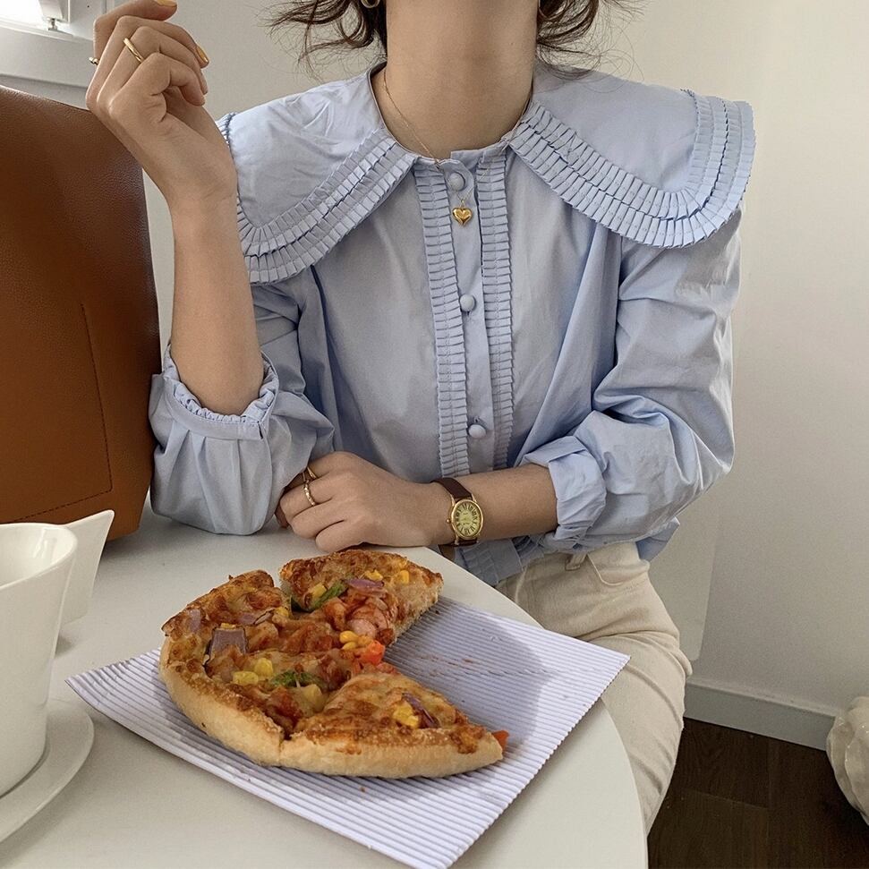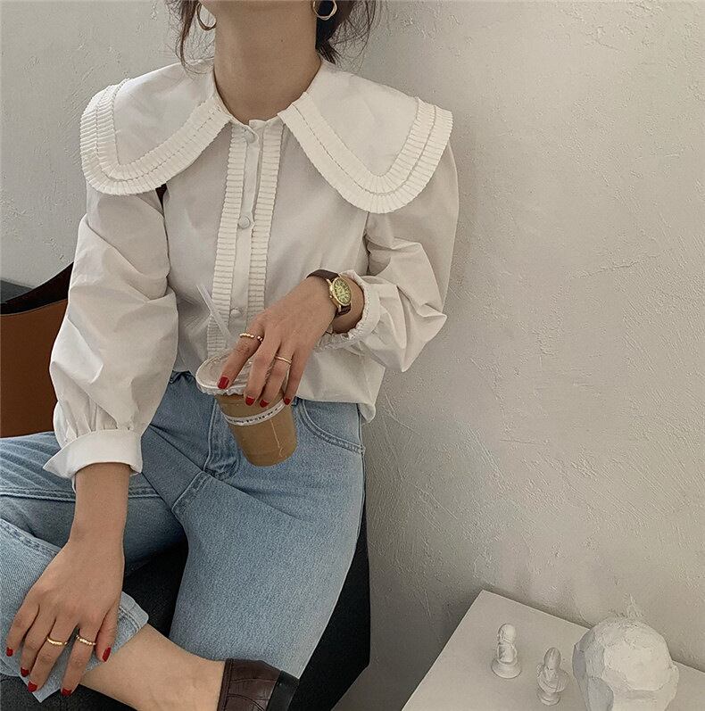 トップス レディース ブラウス 袖あり 長袖 クルーネック 襟付き フリル ラージカラー フリル タック パフスリーブ かわいい 大人可愛い きれいめ シンプル カジュアル 大人 上品 おしゃれ お洒落 かっこいい レトロ アジアン 大人可愛い 大人女子 こなれ感 ラフ 無地 レディース ビジネス OL 通勤 学生 通学 デート お出かけ 公園デビュー 女子会 お泊まり 休日 アウトドア パーティー イベント リゾート お揃い 双子 ファッション コーデ スタイル 楽ちん ブルー ホワイト