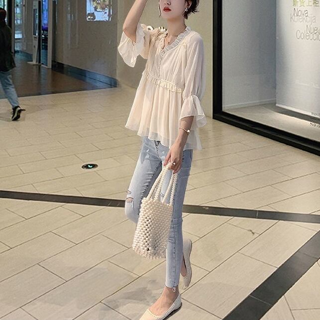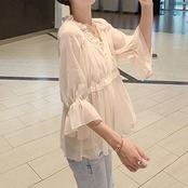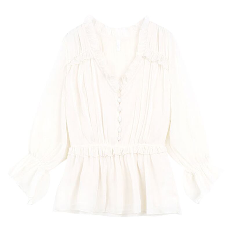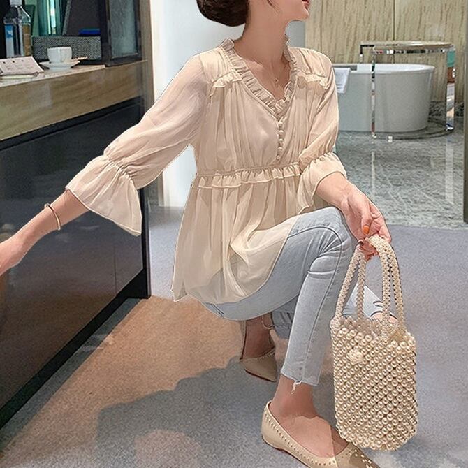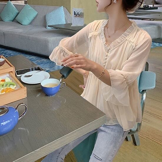トップス レディース シャツ ブラウス 袖あり 長袖 襟なし 透け感 フリル ウエストマーク ハイウエスト Vネック ペプラム 大人可愛い きれいめ シンプル カジュアル 大人 上品 おしゃれ お洒落 かっこいい レトロ 大人女子 こなれ感 ラフ ボーイッシュ クール モード系 セクシー エレガント モダン とろみ感 無地 春 秋 冬 入学式 入園式 卒業式 卒園式 10代 20代 30代 40代 50代 女性用 ママ オフィス ビジネス OL 通勤 学生 通学 デート お出かけ 休日
