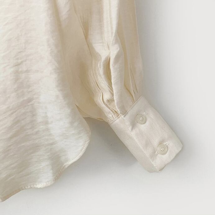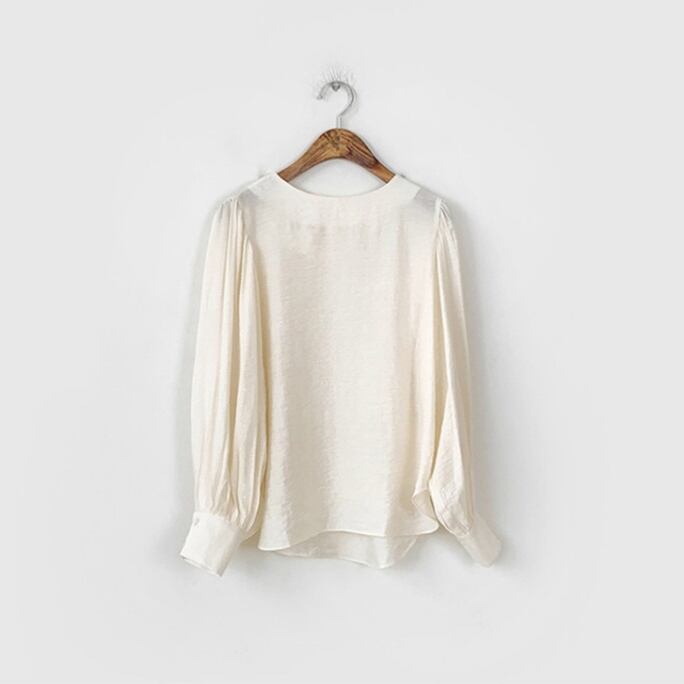 シックな透け感とツヤ感のある生地で仕立てたふんわりブラウスです。