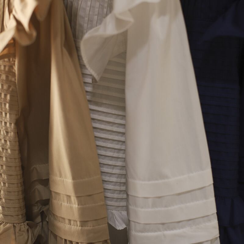 繊細なタックと切り替えが上品なデザインで、ドレッシーな高級感が漂います。