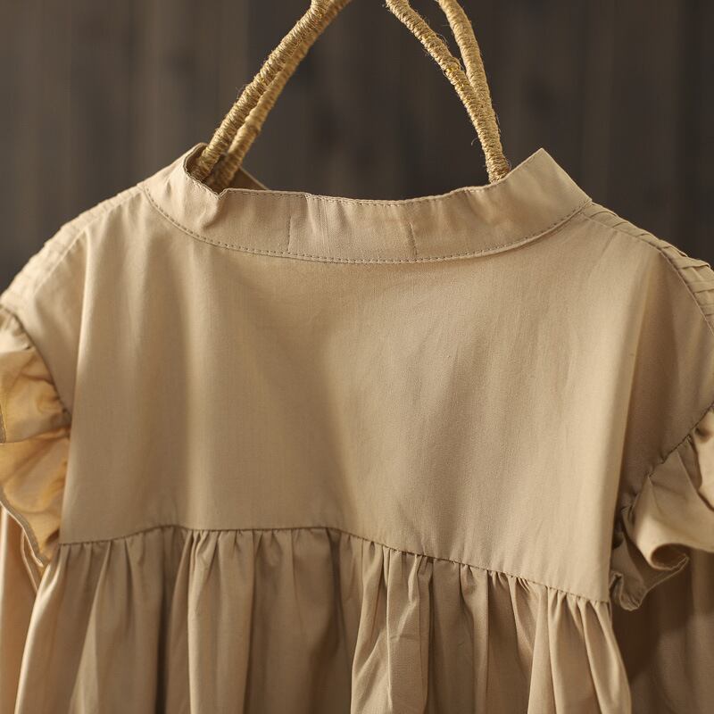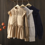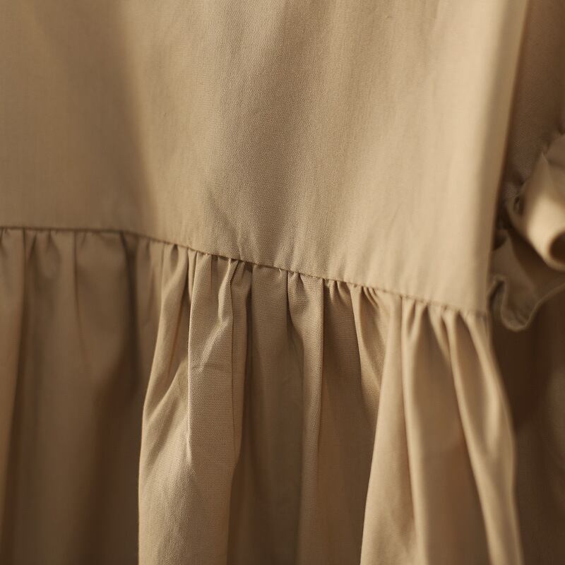 フリル襟がさり気ない愛らしさで、ハイウエストの切り替えでスタイルアップが可能に。