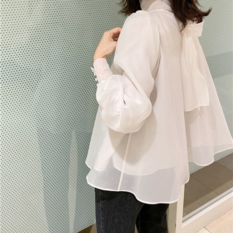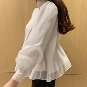ボリューム袖がドレッシーで可愛いシャツブラウスです。