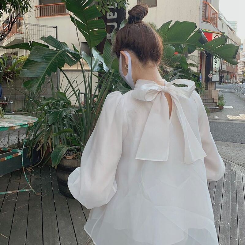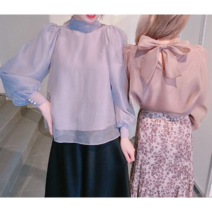 トップス シャツ ブラウス 袖あり 長袖 ボリューム袖 ハイネック ボウタイ 2WAY かわいい 大人可愛い シフォン きれいめ カジュアル 大人 おしゃれ お洒落 レトロ 大人可愛い 大人女子 こなれ感 ラフ マニッシュ ラブリー キュート ガーリー 個性的 モード系 エレガント 主役級 存在感 抜け感 花柄 フラワー 春 秋 10代 20代 30代 40代 レディース 女性用 オフィス OL 通勤 学生 通学 お出かけ 女子会 アウトドア ピンク ホワイト パープル ドット ライトパープル