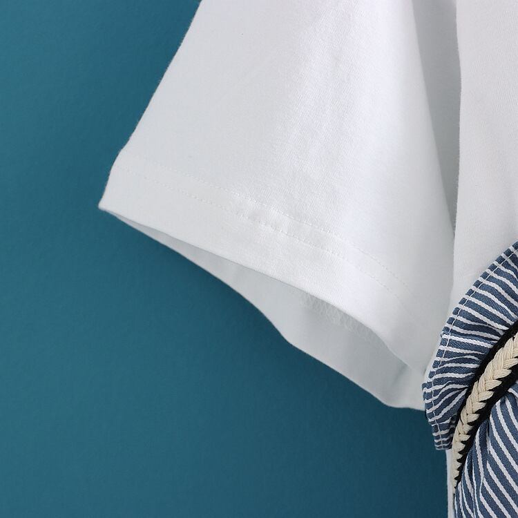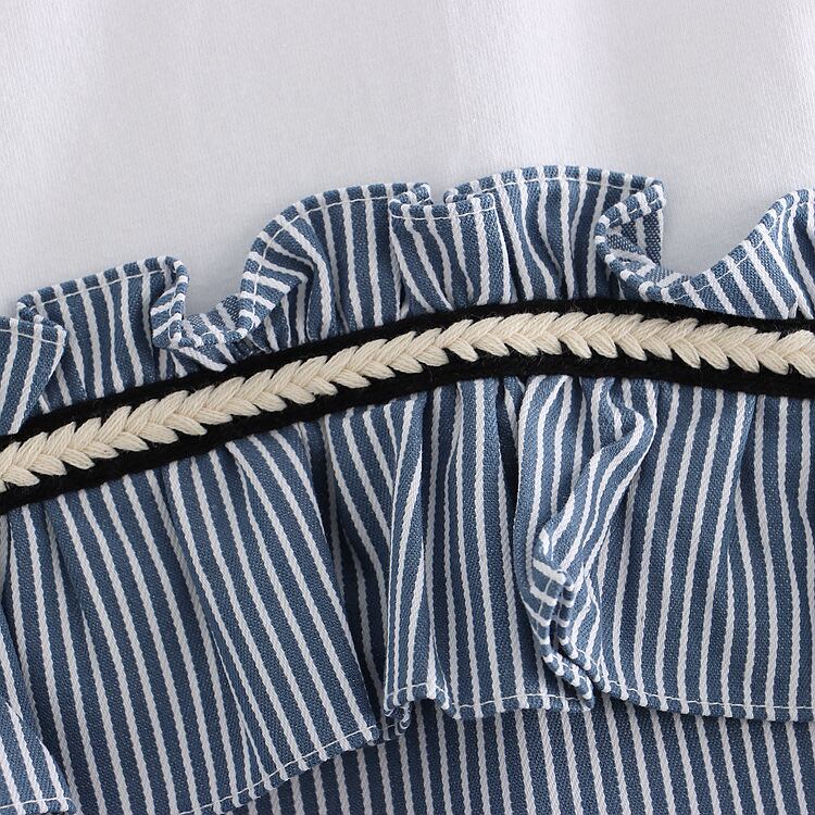ドッキングTシャツ Tシャツ 袖あり 半袖 ラウンドネック フリル かわいい 大人可愛い シンプル カジュアル おしゃれ ストライプ 夏 10代 20代 30代 40代 お出かけ 公園デビュー 女子会 休日 着回し 普段使い ホワイト