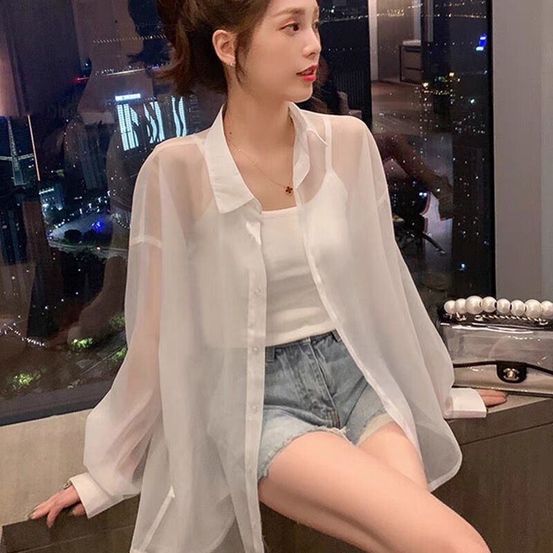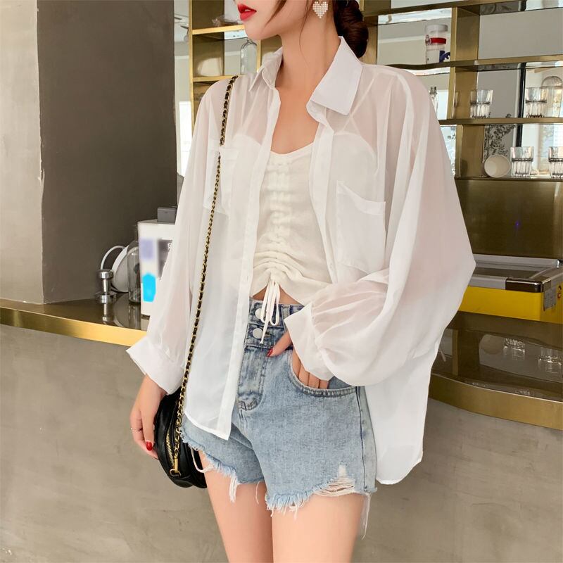 ほんのり透け感のある生地で、女性の優しさをアピールしてくれるシアーシャツブラウス。