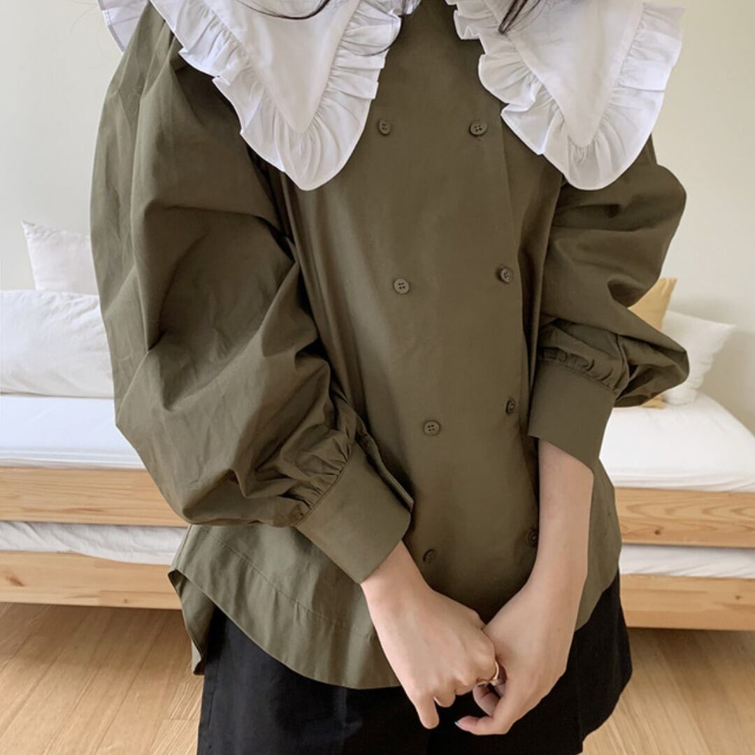 トップス レディース ブラウス 袖あり 長袖 クルーネック 襟付き フリル ラージカラー バイカラー ダブルブレスト タック パフスリーブ かわいい 大人可愛い きれいめ シンプル カジュアル 大人 上品 おしゃれ お洒落 かっこいい レトロ アジアン 大人可愛い 大人女子 こなれ感 ラフ 無地 レディース ビジネス OL 通勤 学生 通学 デート お出かけ 公園デビュー 女子会 お泊まり 休日 アウトドア パーティー お揃い ファッション コーデ スタイル 楽ちん ブラック グリーン ホワイト
