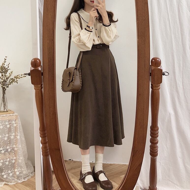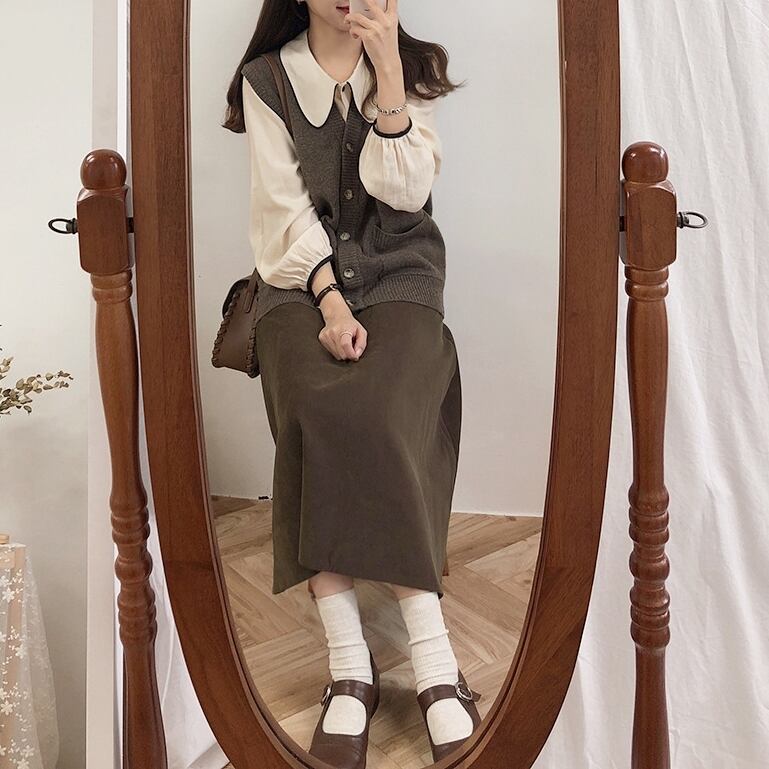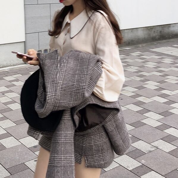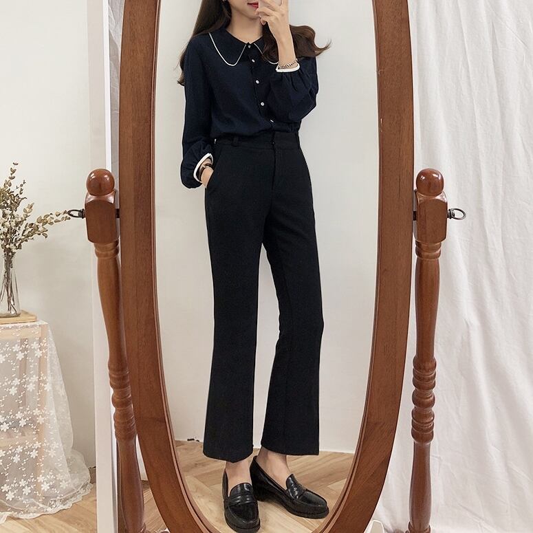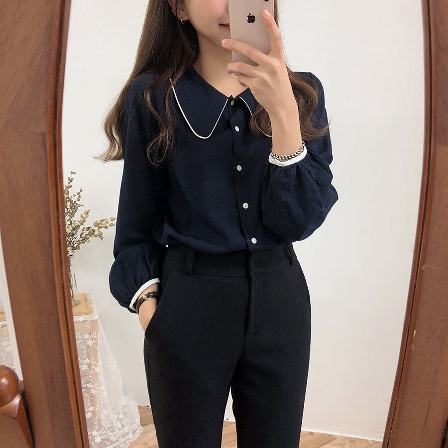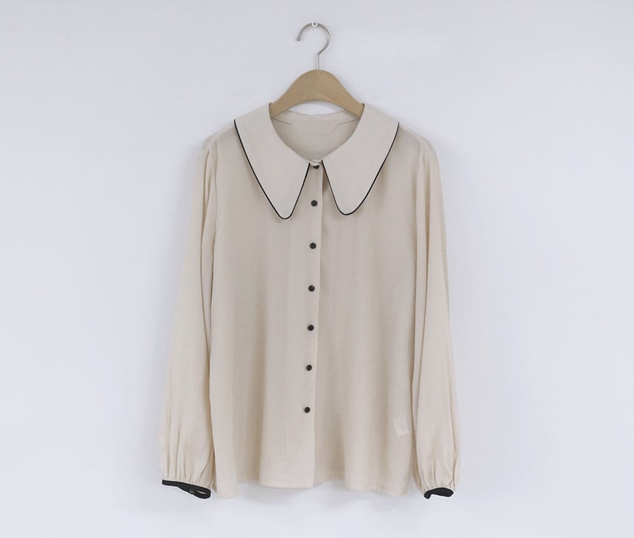 パイピングをあしらった丸襟が可愛いフェミニンブラウスです。