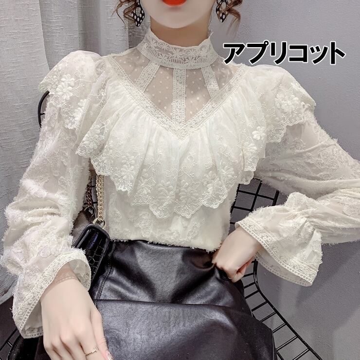 トップス ブラウス レディース カットソー 袖あり 長袖 ハイネック 総レース ベルスリーブ 切り替え 花柄 シアー シースルー 透け感 かわいい 大人可愛い シンプル カジュアル 大人 おしゃれ 大人女子 こなれ感 キュート 柄 春 夏 10代 20代 30代 オフィス ビジネス OL 通勤 デート お出かけ 普段使い S M L XL ホワイト アプリコット