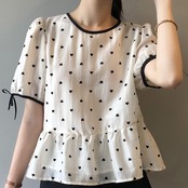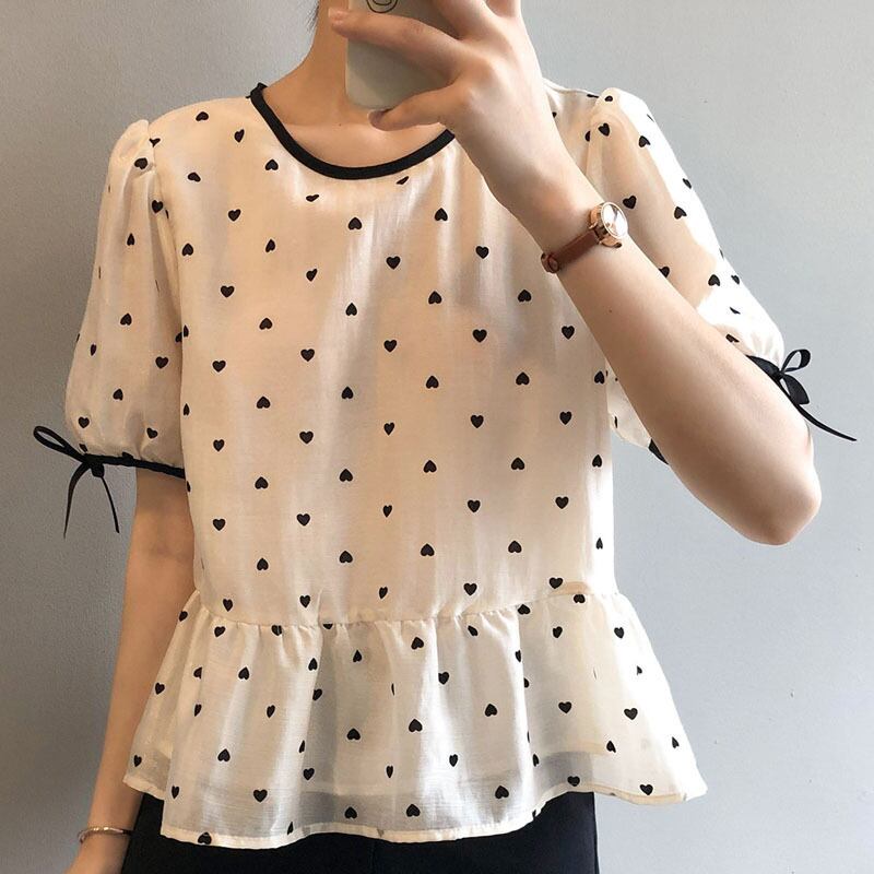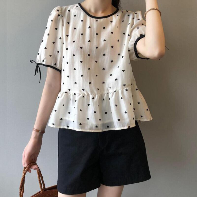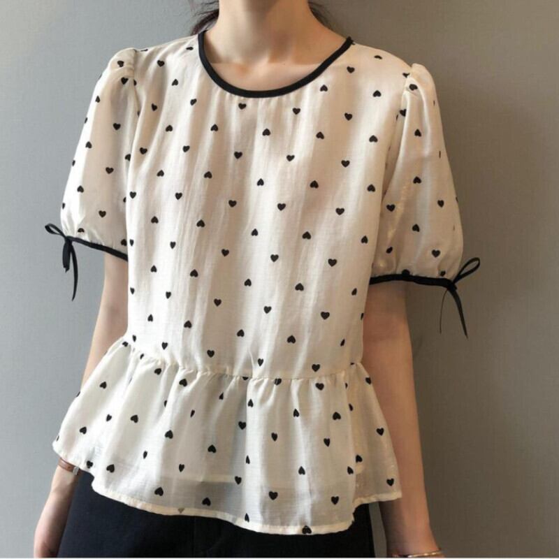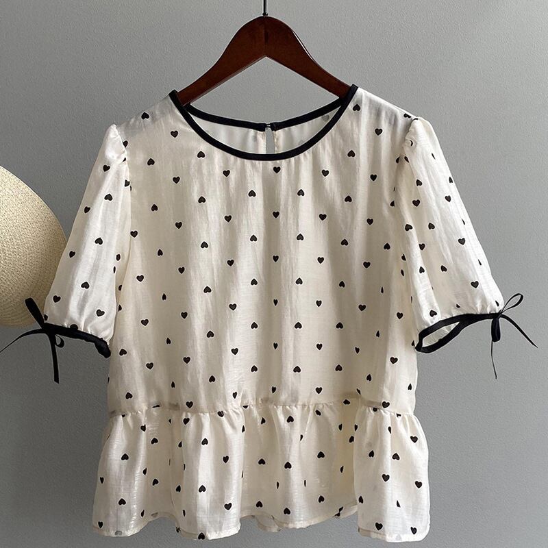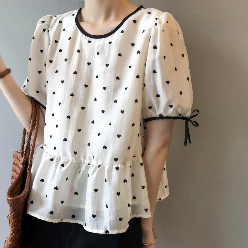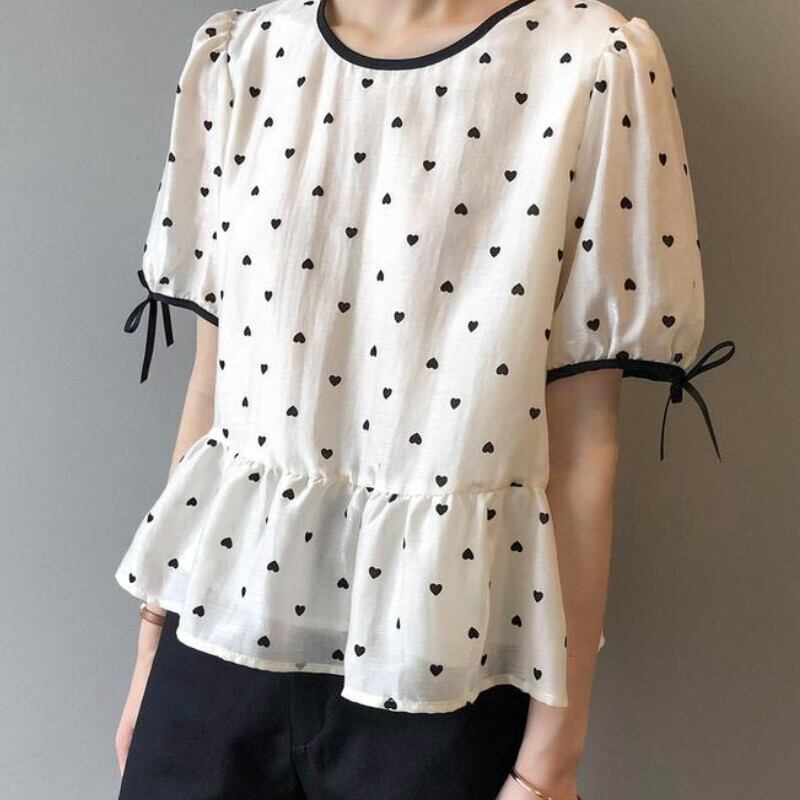 トップス ブラウス 袖あり 半袖 パフスリーブ ランタンスリーブ フリル リボン ペプラム かわいい 大人可愛い きれいめ シンプル カジュアル 上品 おしゃれ レトロ 大人女子 こなれ感 ラブリー キュート エレガント 無地 ハート柄 春 夏 10代 20代 30代 40代 レディース オフィス OL 通勤 学生 通学 デート お出かけ 女子会 着回し 普段使い 韓国系 オルチャン ファッション コーデ スタイル モテ 体型カバー S M ベージュ