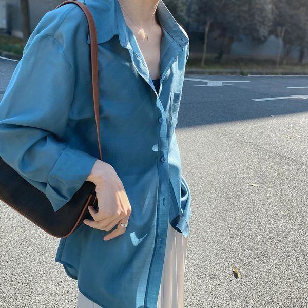トップス シャツ ブラウス 袖あり 長袖 襟付き 大人可愛い ニュアンスカラー シアー 透け感 きれいめ シンプル カジュアル 大人 上品 おしゃれ お洒落 かっこいい レトロ 大人女子 こなれ感 ラフ ルーズ 個性的 クール モード系 セクシー エレガント モダン 主役級 存在感 とろみ感 抜け感 無地 春 秋 冬 入学式 入園式 卒業式 卒園式 謝恩会 10代 20代 30代 40代 50代 60代 レディース 女性用 ママ オフィス ビジネス OL 通勤 学生 イエロー グリーン ホワイト ブルー
