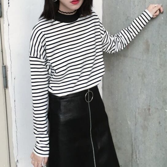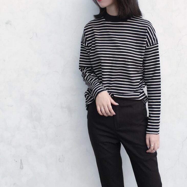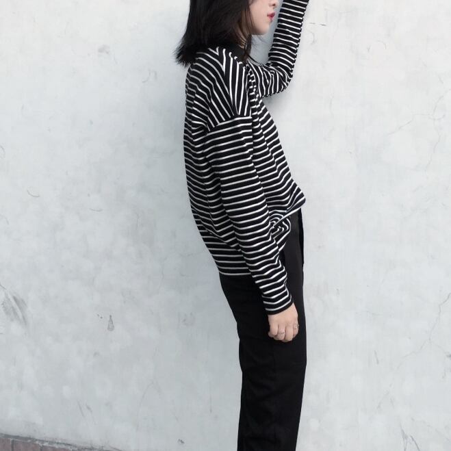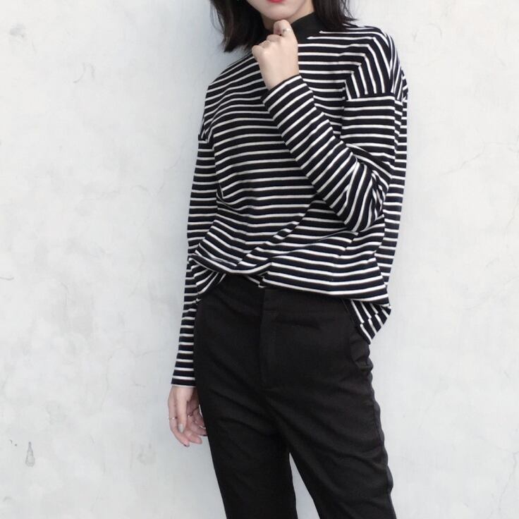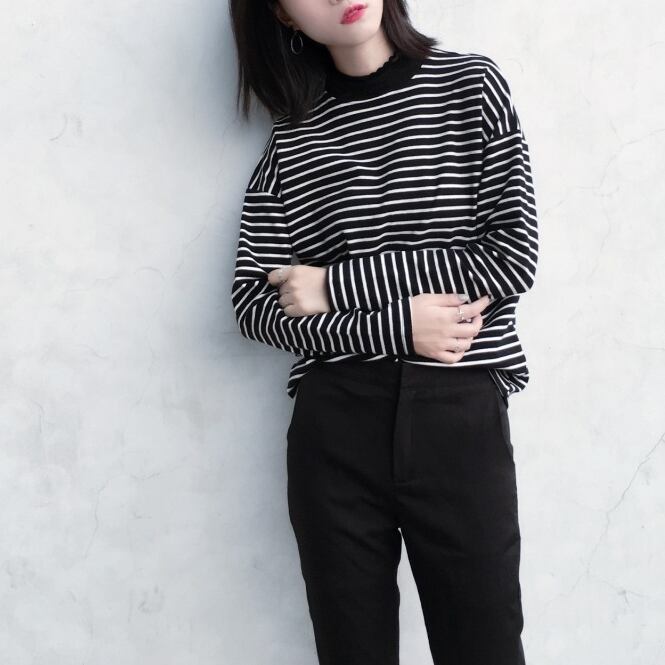 Tシャツ レディース トップス カットソー ルーズ ボーダー 長袖 襟付き スリット プチハイネック ドロップショルダー クルーネック ゆったり Aライン こなれ感 かわいい 大人可愛い メンズライク きれいめ シンプル カジュアル 大人 上品 おしゃれ お洒落 かっこいい 大人女子 こなれ感 ラフ キュート ガーリー ルーズ 春 夏 10代 20代 30代 40代 レディース デート お出かけ 女子会 お泊まり 休日 着回し 普段使い 重ね着 韓国系 コーデ スタイル モテ 体型カバー 脚長