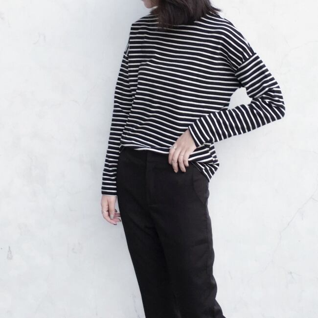 モノトーンのボーダーが着まわしやすい定番のアイテムです。
