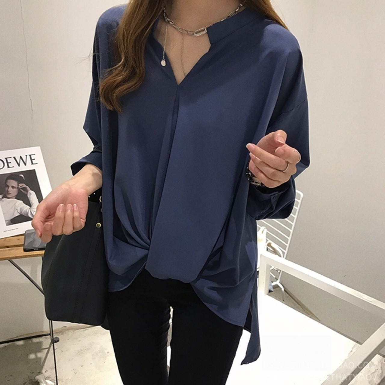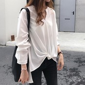すっきりとしたキーネックが大人っぽいブラウスです。