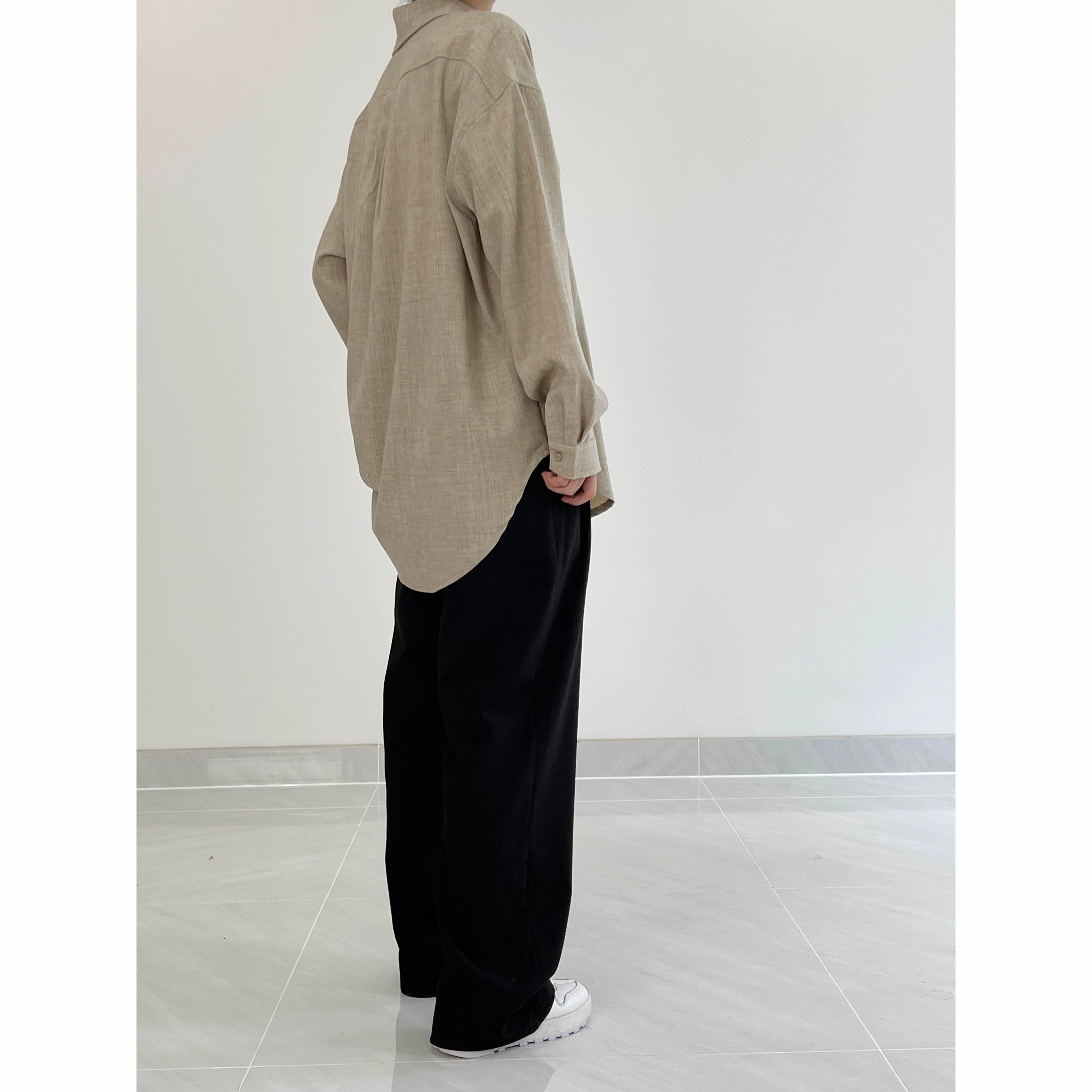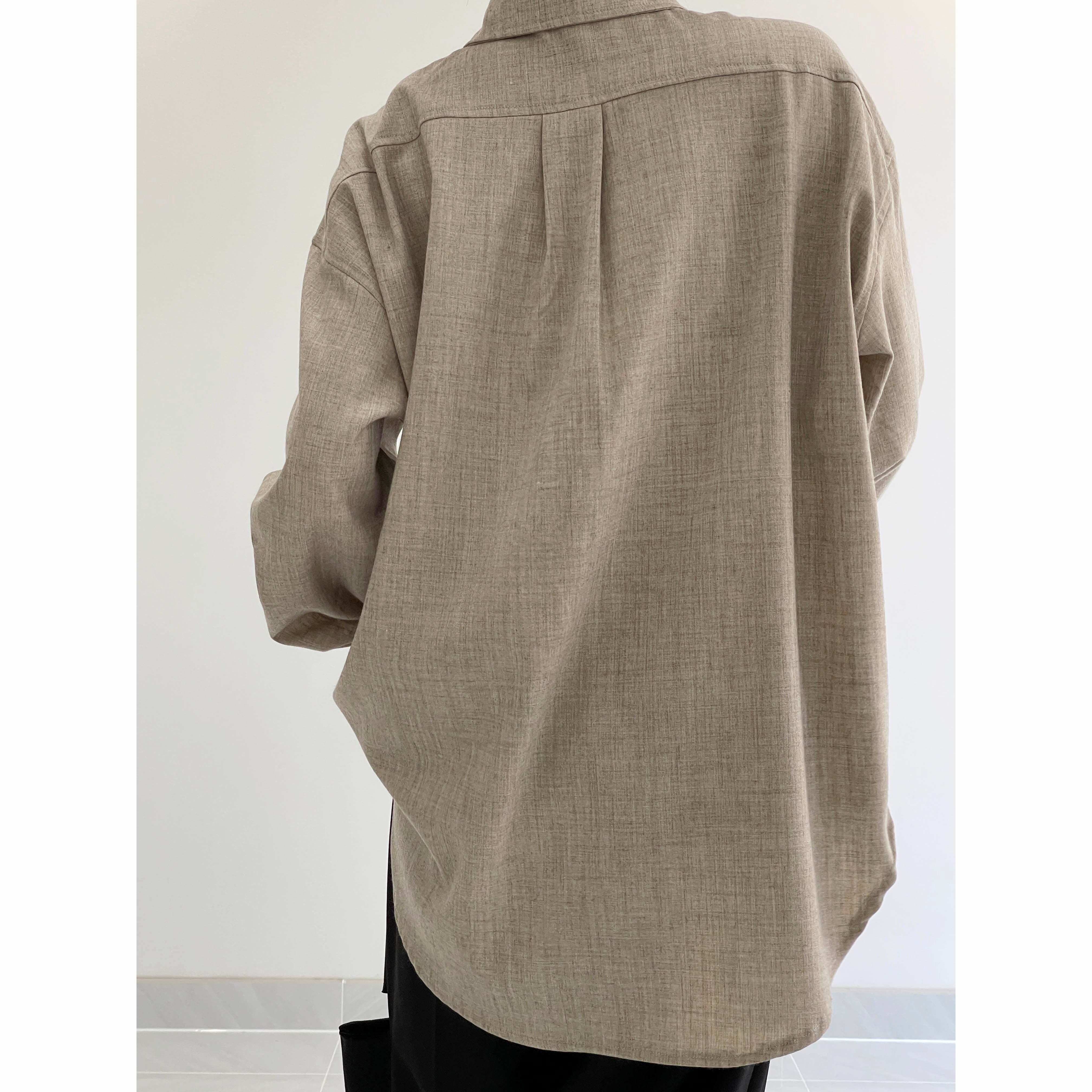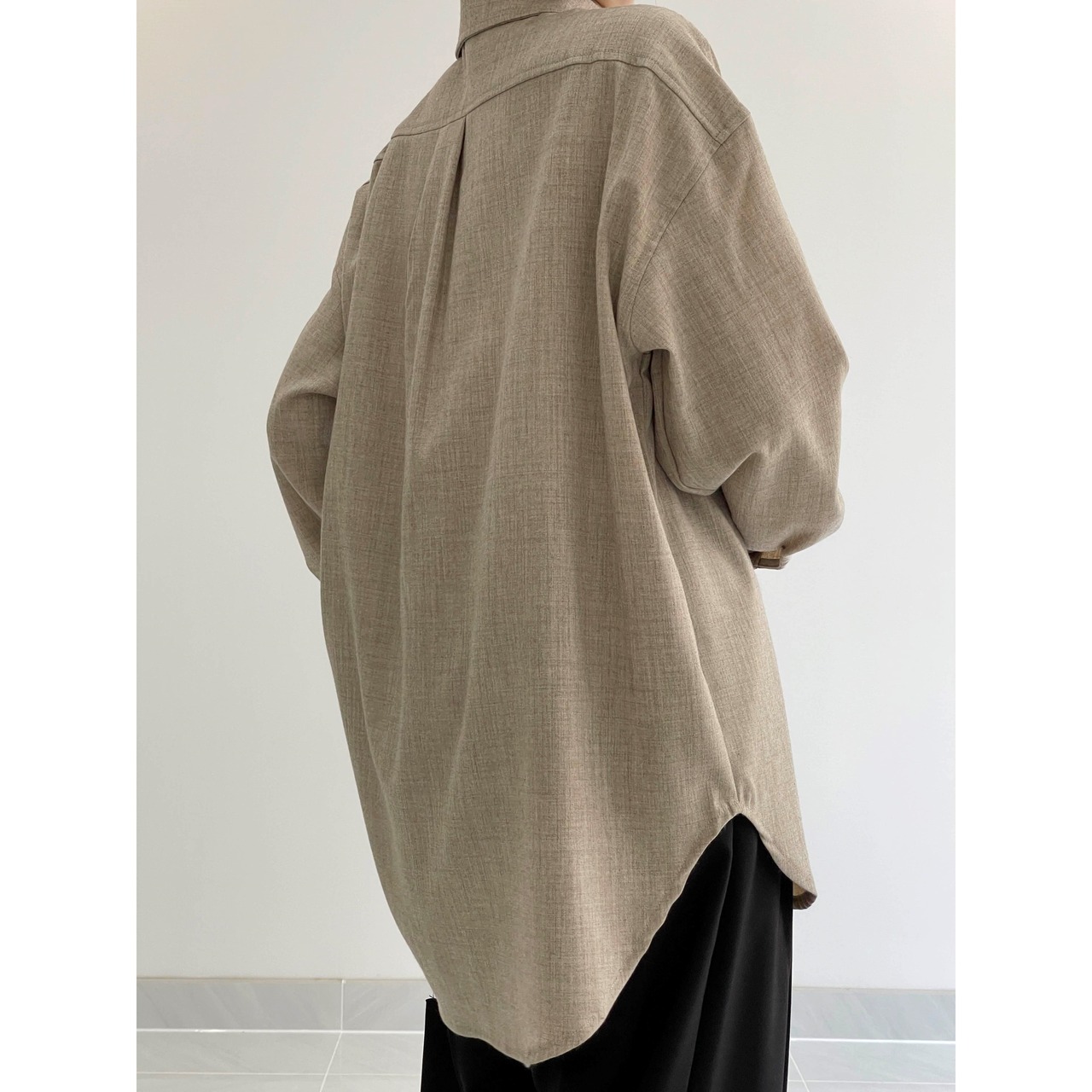 ゆったりサイズのシンプルなつくりの無地の長袖シャツです。