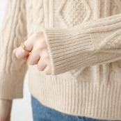 ベーシックなケーブル編みデザインの長袖ニットセーターです。