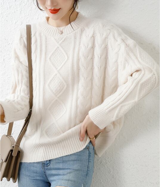 トップス ニット セーター クルーネック ケーブル編み 長袖 ルーズ ベーシック レトロ プルオーバー あたたか 人気 おすすめ おしゃれ お洒落 激安 安い 送料無料 プチプラ 可愛い かわいい 韓国 かっこいい カジュアル 大人 上品 きれいめ おしゃれ 大人可愛い 大人女子 モード系 ガーリー オフィス ビジネス OL 通勤 デート お出かけ 女子会 レディース 女性用 20代 30代 ママ 着回し 普段使い 重ね着 オルチャン ファッション 楽ちん モテ ホワイト 白 ベージュ グレー 灰色