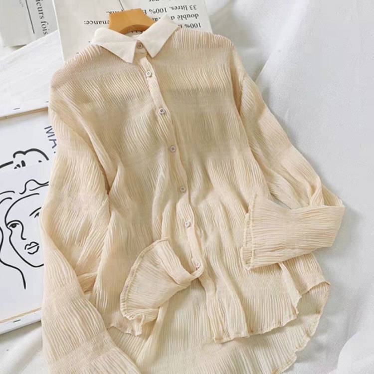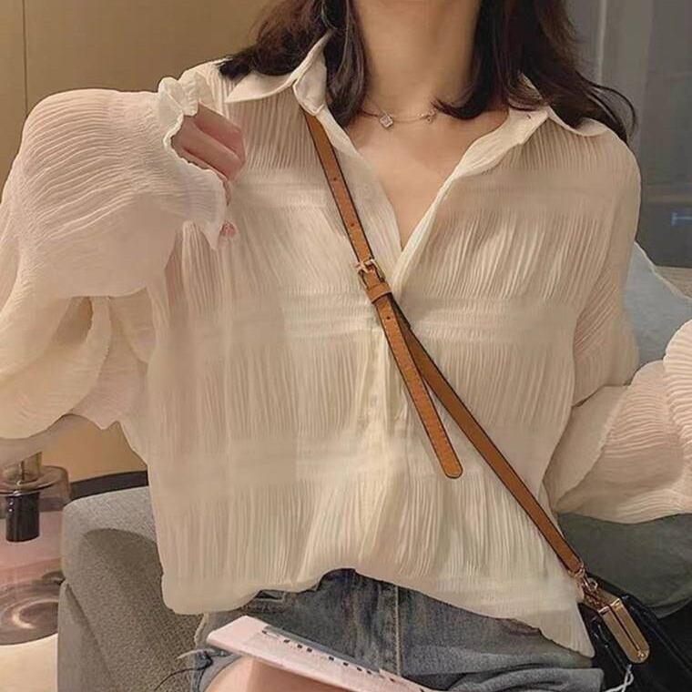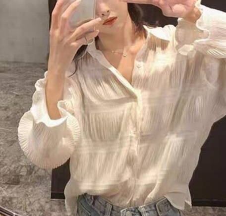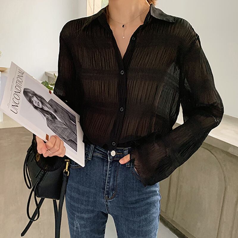トップス ブラウス 袖あり 長袖 ギャザー デザイン袖 無地 シャーリング レギュラーカラー ボリューム 切り替え 透け感 シースルー チュール ショート丈 バブルスリーブ かわいい 大人可愛い シンプル カジュアル 大人 おしゃれ アジアン 大人女子 こなれ感 キュート デート クラシカル 柄 春 夏 10代 20代 30代 オフィス ビジネス OL 通勤 デート お出かけ 普段使い ワンサイズ ホワイト ブラック